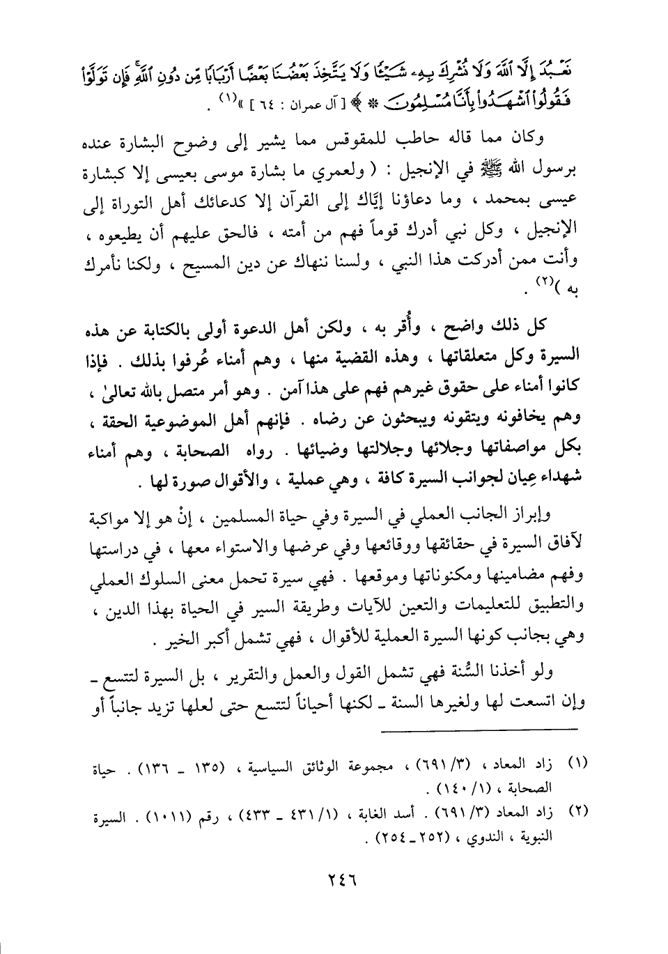 كل ذلك واضح، وأقر به، ولكن أهل الدعوة أولى بالكتابة عن هذه السيرة وكل متعلقاتها، وهذه القضية منها، وهم أمناء عرفوا بذلك. فإذا كانوا أمناء على حقوق غيرهم فهم على هذا آمن. وهو أمر متصل بالله تعالى، وهم يخافونه ويتقونه ويبحثون عن رضاه. فإنهم أهل الموضوعية الحقة، بكل مواصفاتها وجلائها وجلالتها وضيائها. رواه الصحابة، وهم أمناء شهداء عيان لجوانب السيرة كافة، وهي عملية، والأقوال صورة لها.
