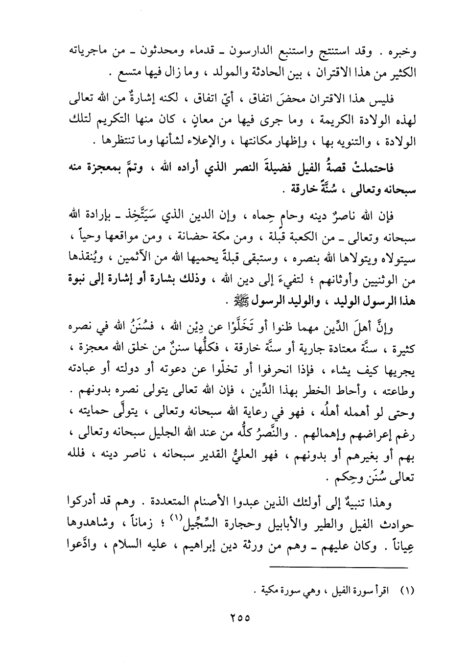 فاحتملت قصة الفيل فضيلة النصر الذي أراده الله، وتمّ بمعجزة منه سبحانه وتعالى، سنّة خارقة.