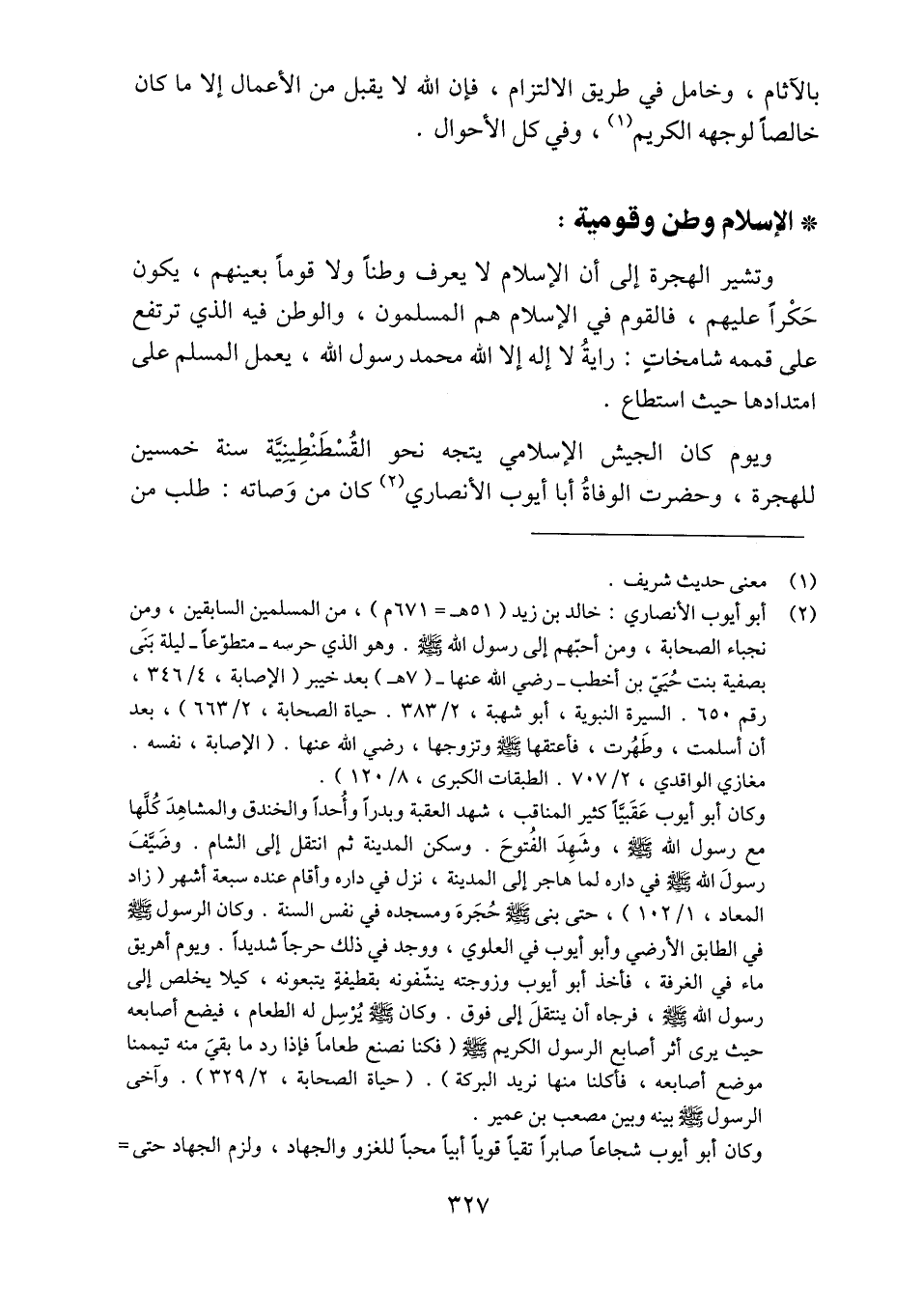 ويوم كان الجيش الإسلامي يتجه نحو القسطنطينيّة سنة خمسين للهجرة، وحضرت الوفاة أبا أيوب الأنصاري «2» كان من وصاته: طلب من
