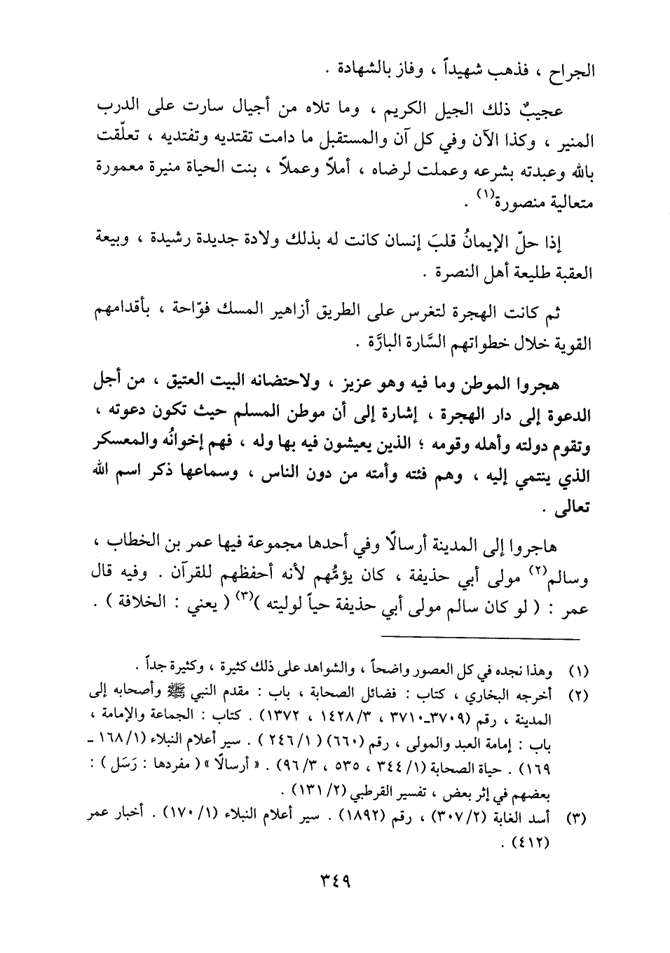 (2) أخرجه البخاري، كتاب: فضائل الصحابة، باب: مقدم النبي صلّى الله عليه وسلّم وأصحابه إلى المدينة، رقم (3709- 3710، 3/ 1428، 1372) . كتاب: الجماعة والإمامة، باب: إمامة العبد والمولى، رقم (660) (1/ 246) . سير أعلام النبلاء (1/ 168- 169) . حياة الصحابة (1/ 344، 535، 3/ 96) . «أرسالا» (مفردها: رسل) : بعضهم في إثر بعض، تفسير القرطبي (2/ 131) .
