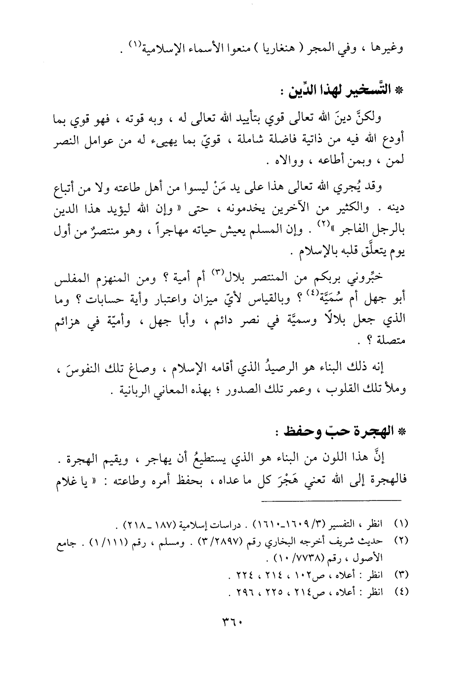 وقد يجري الله تعالى هذا على يد من ليسوا من أهل طاعته ولا من أتباع دينه. والكثير من الآخرين يخدمونه، حتى «وإن الله ليؤيد هذا الدين بالرجل الفاجر» «2» . وإن المسلم يعيش حياته مهاجرا، وهو منتصر من أول يوم يتعلّق قلبه بالإسلام.