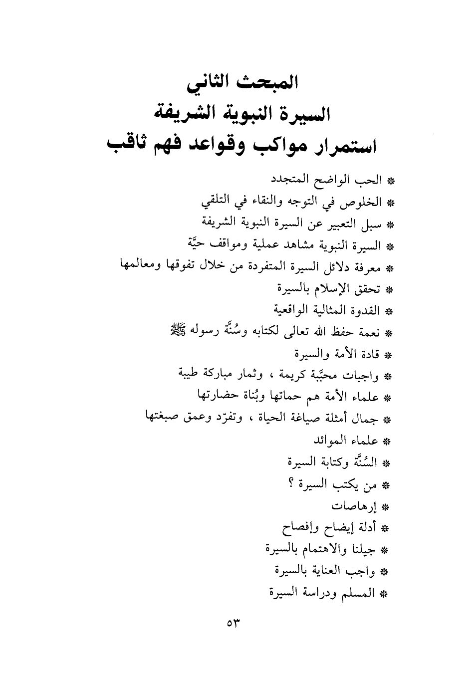 المبحث الثاني السيرة النبوية الشريفة استمرار مواكب وقواعد فهم ثاقب