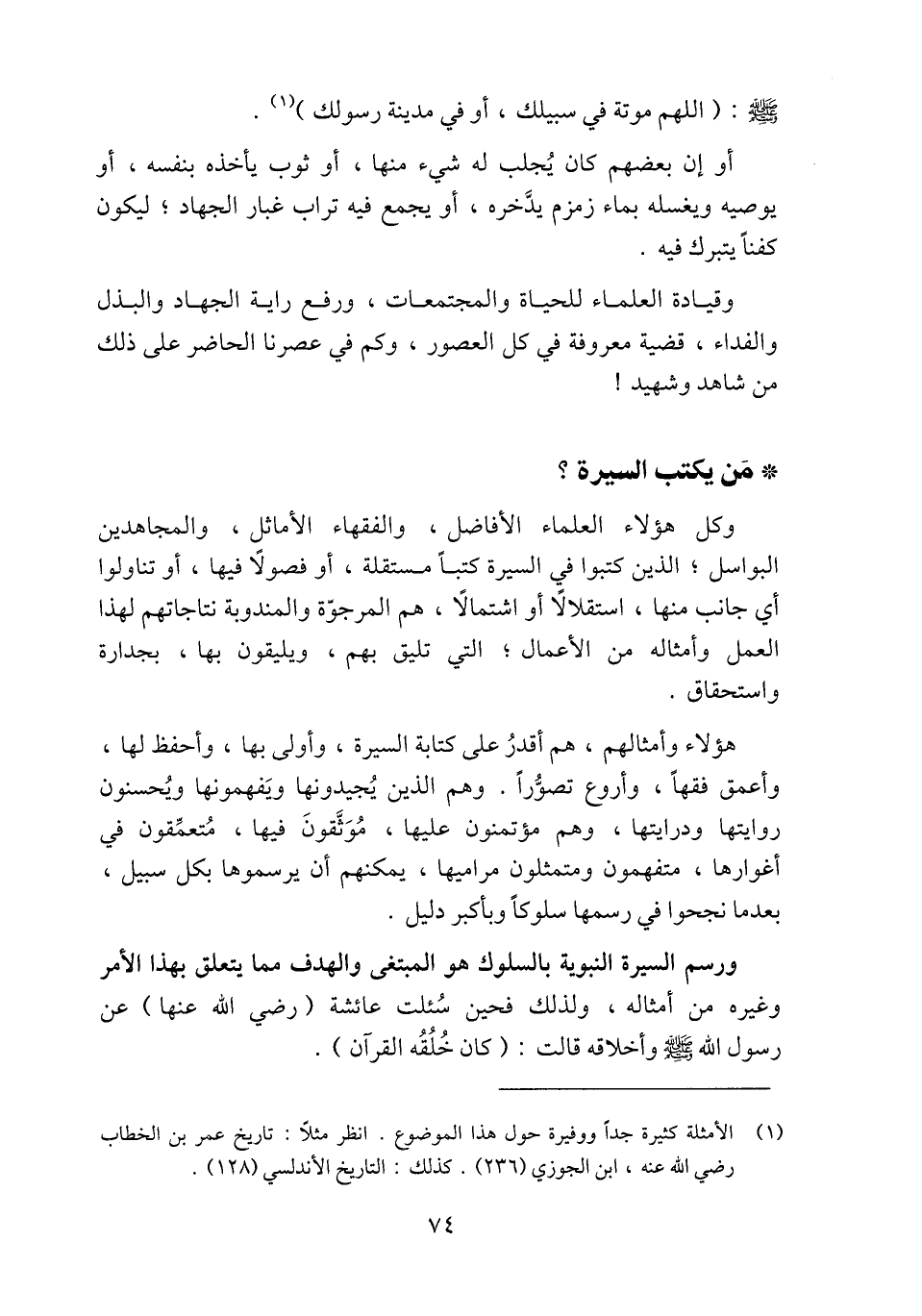 (1) الأمثلة كثيرة جدا ووفيرة حول هذا الموضوع. انظر مثلا: تاريخ عمر بن الخطاب رضي الله عنه، ابن الجوزي (236) . كذلك: التاريخ الأندلسي (128) .