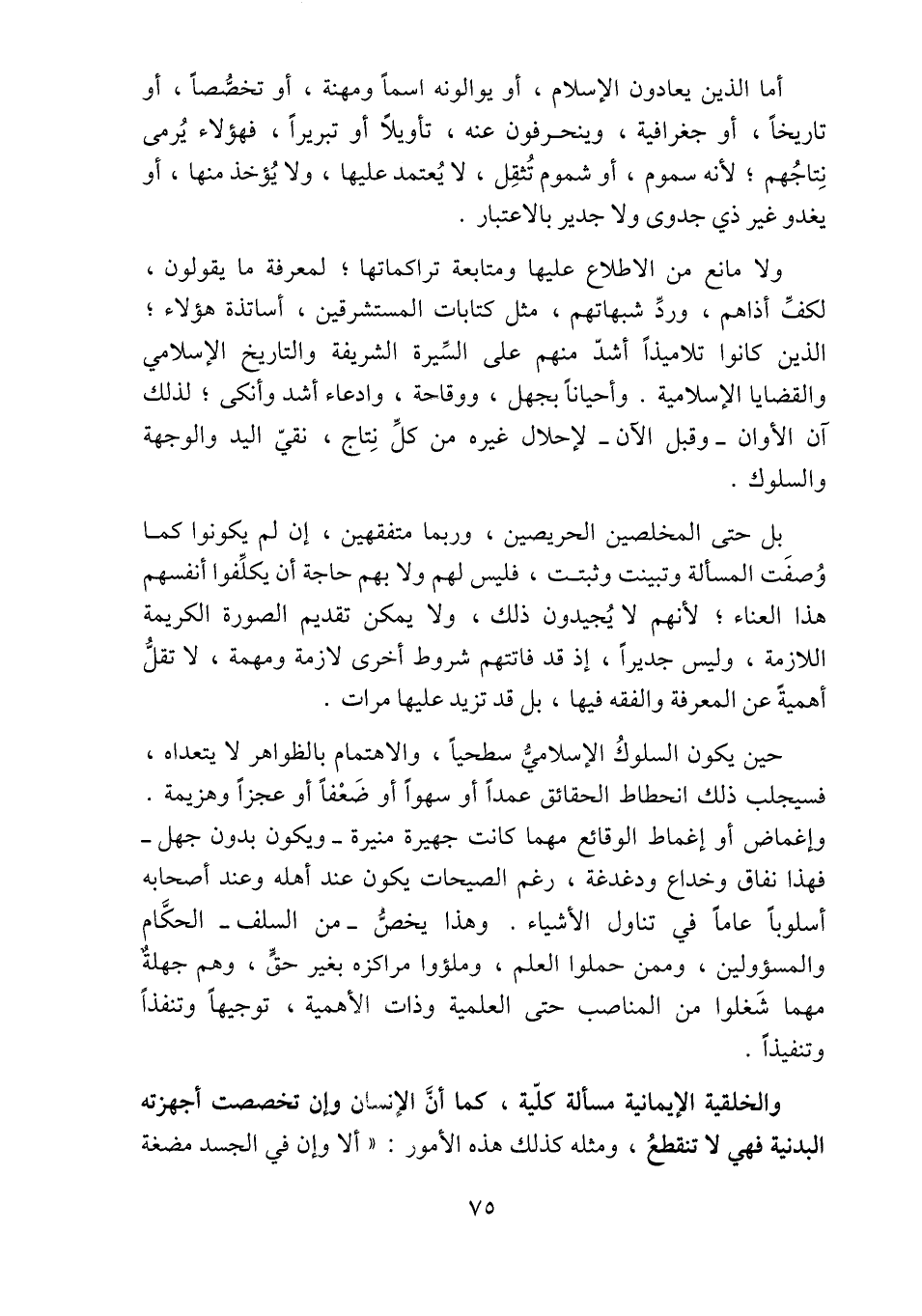 حين يكون السلوك الإسلاميّ سطحيا، والاهتمام بالظواهر لا يتعداه، فسيجلب ذلك انحطاط الحقائق عمدا أو سهوا أو ضعفا أو عجزا وهزيمة.
