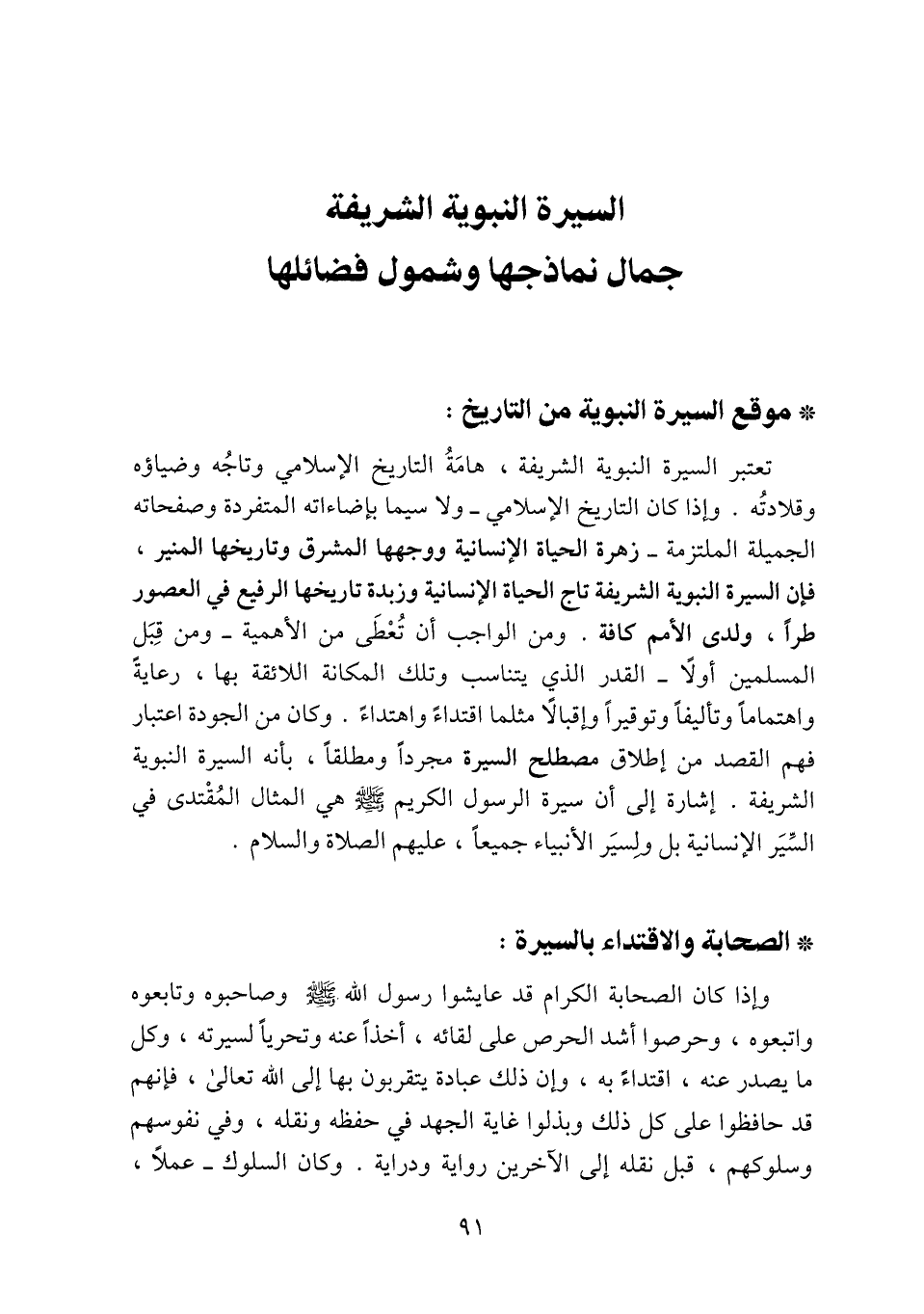 السيرة النبوية الشريفة جمال نماذجها وشمول فضائلها