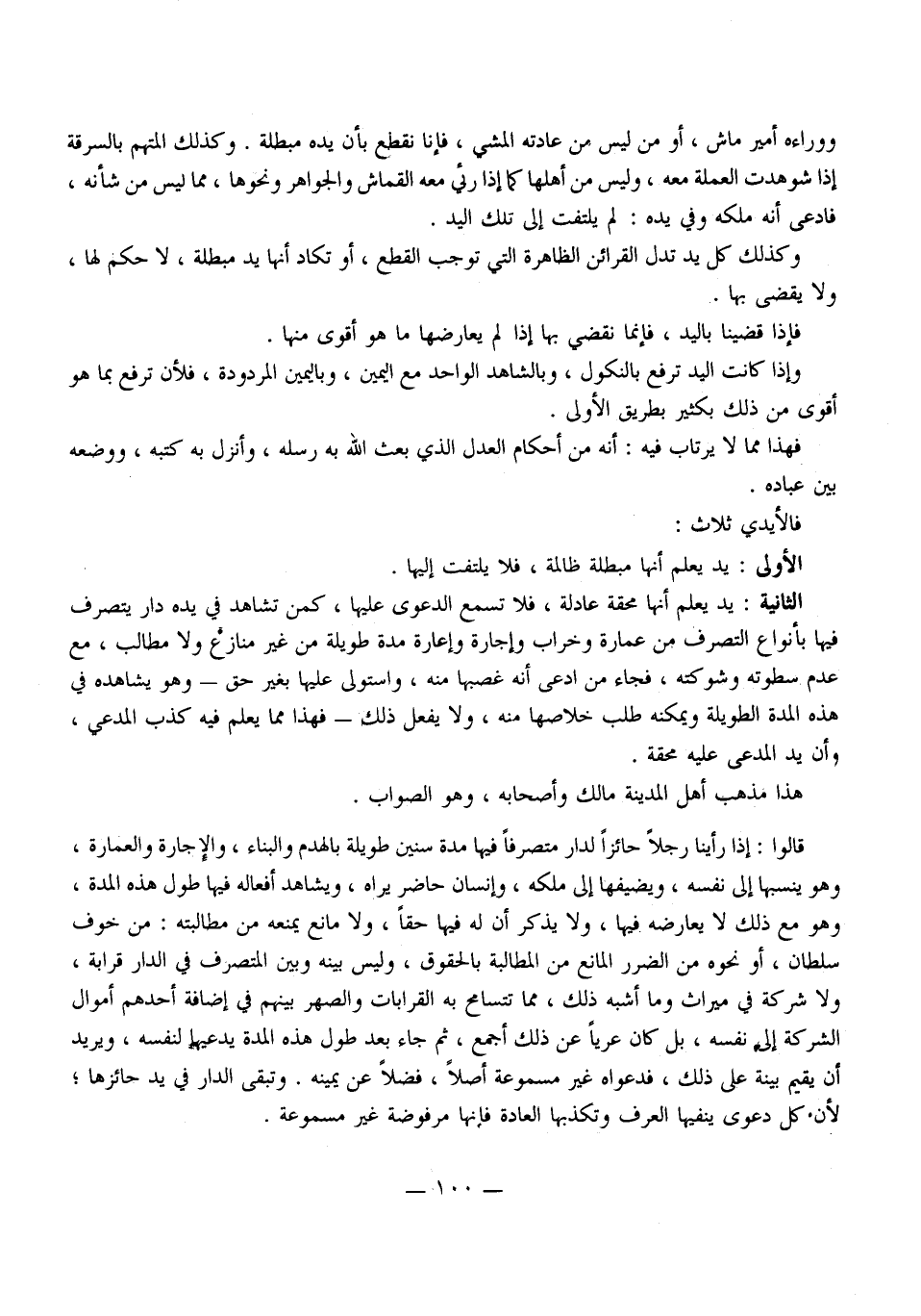 وَإِذَا كَانَتْ الْيَدُ تُرْفَعُ بِالنُّكُولِ، وَبِالشَّاهِدِ الْوَاحِدِ مَعَ الْيَمِينِ، وَبِالْيَمِينِ الْمَرْدُودَةِ، فَلَأَنْ تُرْفَعَ بِمَا هُوَ أَقْوَى مِنْ ذَلِكَ بِكَثِيرٍ بِطَرِيقِ الْأَوْلَى. فَهَذَا مِمَّا لَا يَرْتَابُ فِيهِ: أَنَّهُ مِنْ أَحْكَامِ الْعَدْلِ الَّذِي بَعَثَ اللَّهُ بِهِ رُسُلَهُ، وَأَنْزَلَ بِهِ كُتُبَهُ، وَوَضَعَهُ بَيْنَ عِبَادِهِ. فَالْأَيْدِي ثَلَاثٌ: