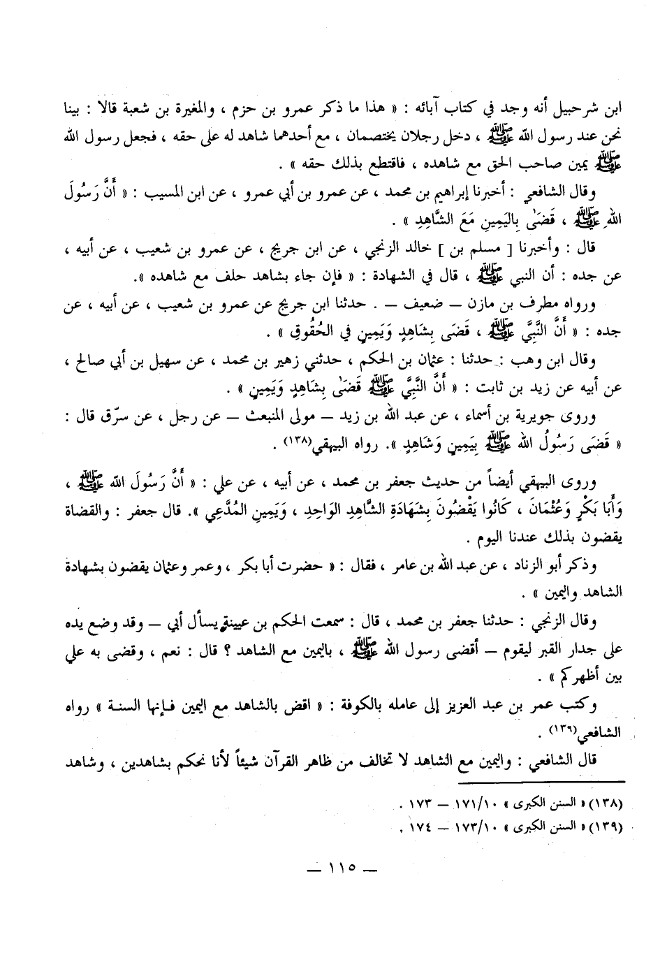 قَالَ جَعْفَرٌ: وَالْقُضَاةُ يَقْضُونَ بِذَلِكَ عِنْدَنَا الْيَوْمَ. وَذَكَرَ أَبُو الزِّنَادِ، عَنْ عَبْدِ اللَّهِ بْنِ عَامِرٍ، فَقَالَ: " حَضَرْتُ أَبَا بَكْرٍ، وَعُمَرَ وَعُثْمَانَ يَقْضُونَ بِشَهَادَةِ الشَّاهِدِ وَالْيَمِينِ ".