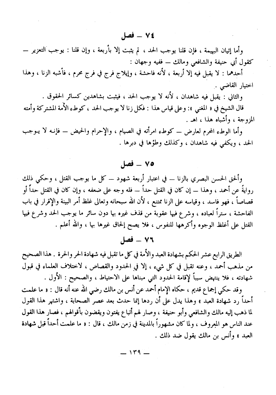 وَأَلْحَقَ الْحَسَنُ الْبَصْرِيُّ بِالزِّنَا - فِي اعْتِبَارِ أَرْبَعَةِ شُهُودٍ كُلَّ مَا يُوجِبُ الْقَتْلَ، وَحَكَى ذَلِكَ رِوَايَةً عَنْ أَحْمَدَ، وَهَذَا إنْ كَانَ فِي الْقَتْلِ حَدًّا - فَلَهُ وَجْهٌ عَلَى ضَعْفِهِ، وَإِنْ كَانَ فِي الْقَتْلِ حَدٌّ أَوْ قِصَاصٌ، فَهُوَ فَاسِدٌ، وَقِيَاسُهُ عَلَى الزِّنَا مُمْتَنِعٌ، لِأَنَّ اللَّهَ سُبْحَانَهُ وَتَعَالَى غَلَّظَ أَمْرَ الْبَيِّنَةِ وَالْإِقْرَارِ فِي بَابِ الْفَاحِشَةِ، سَتْرًا لِعِبَادِهِ، وَشَرَعَ فِيهَا عُقُوبَةَ مَنْ قَذَفَ غَيْرَهُ بِهَا دُونَ سَائِرِ مَا يُوجِبُ الْحَدَّ وَشَرَعَ فِيهَا الْقَتْلَ عَلَى أَغْلَظِ الْوُجُوهِ وَأَكْرَهِهَا لِلنُّفُوسِ، فَلَا يَصِحُّ إلْحَاقُ غَيْرِهَا بِهَا، وَاَللَّهُ أَعْلَمُ.