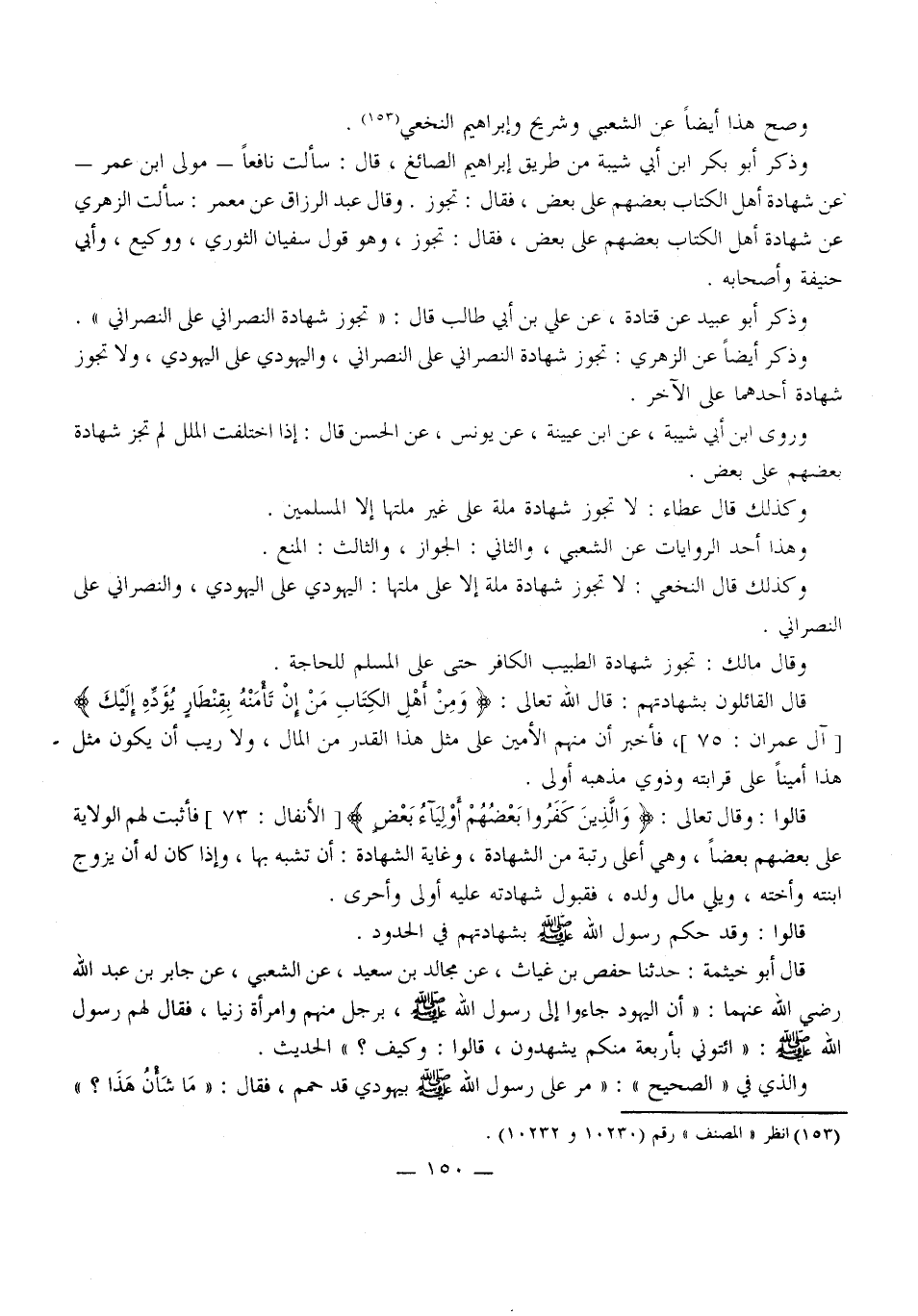 وَصَحَّ هَذَا أَيْضًا عَنْ الشَّعْبِيِّ وَشُرَيْحٍ وَإِبْرَاهِيمَ النَّخَعِيِّ. وَذَكَرَ أَبُو بَكْرِ بْنُ أَبِي شَيْبَةَ مِنْ طَرِيقِ إبْرَاهِيمَ الصَّائِغِ، قَالَ: سَأَلْتُ نَافِعًا مَوْلَى ابْنِ عُمَرَ - عَنْ شَهَادَةِ أَهْلِ الْكِتَابِ بَعْضُهُمْ عَلَى بَعْضٍ، فَقَالَ: تَجُوزُ.