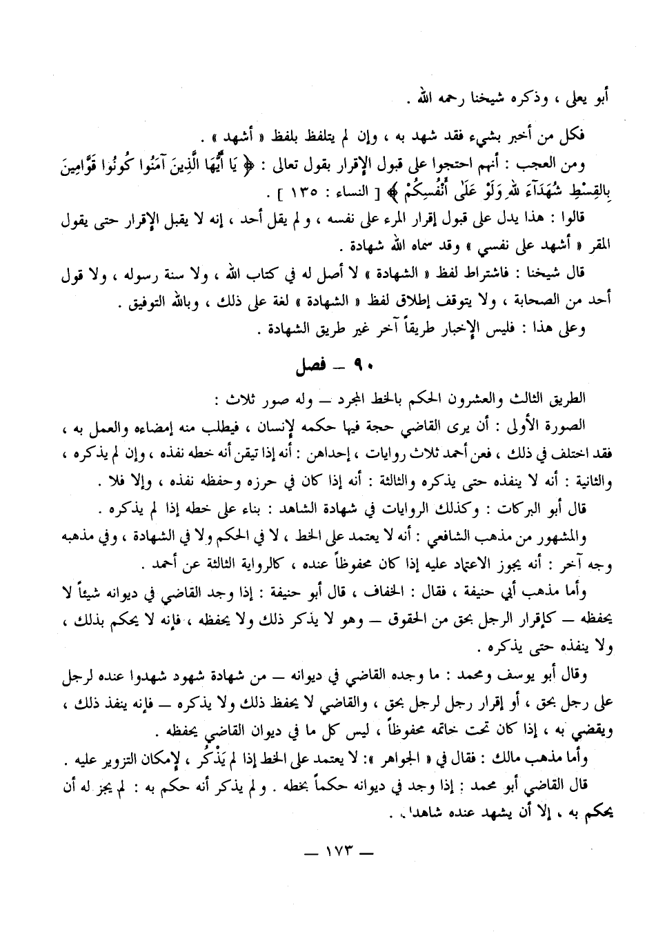 [فَصَلِّ الطَّرِيقُ الثَّالِثُ وَالْعِشْرُونَ فِي الْحُكْمِ بِالْخَطِّ المجرد وَلَهُ صُوَر]