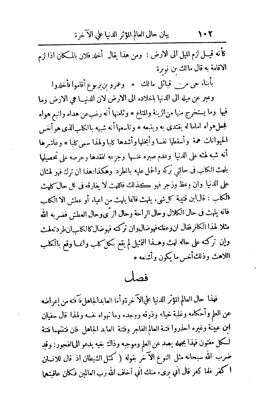 فصل فَهَذَا حَال الْعَالم الْمُؤثر الدُّنْيَا على الْآخِرَة وَأما العابد الْجَاهِل