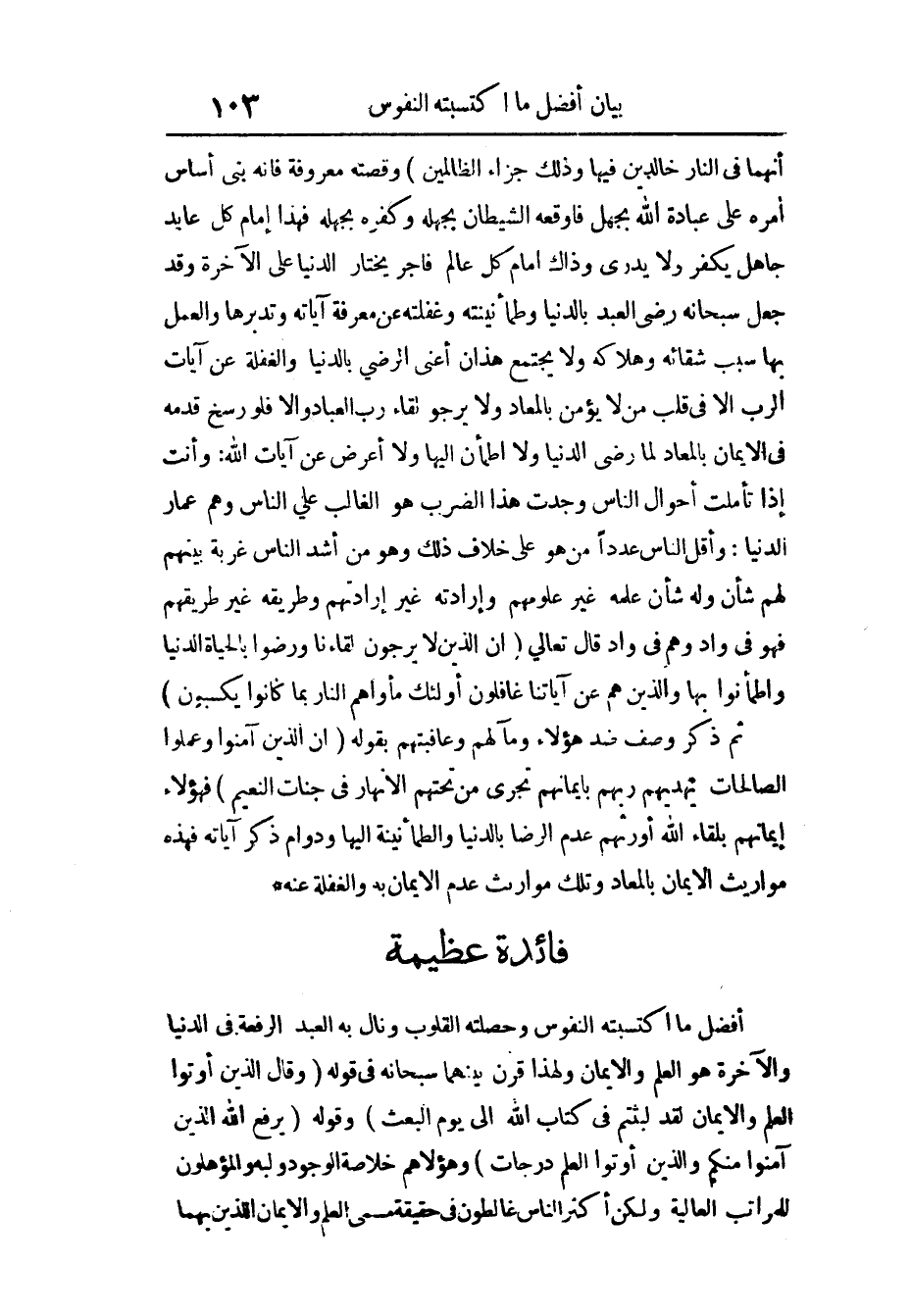 فَائِدَة عَظِيمَة أفضل مَا اكتسبته النُّفُوس وحصلته الْقُلُوب العَبْد ونال بِهِ