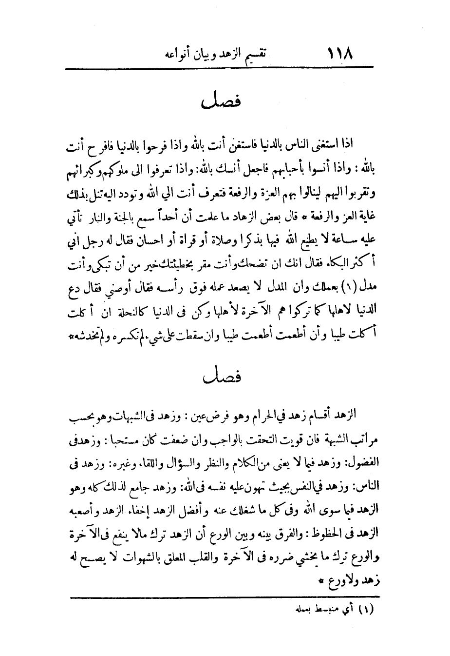 فصل الزّهْد أَقسَام زهد فِي الْحَرَام وَهُوَ فرض عين وزهد فِي الشُّبُهَات وَهُوَ
