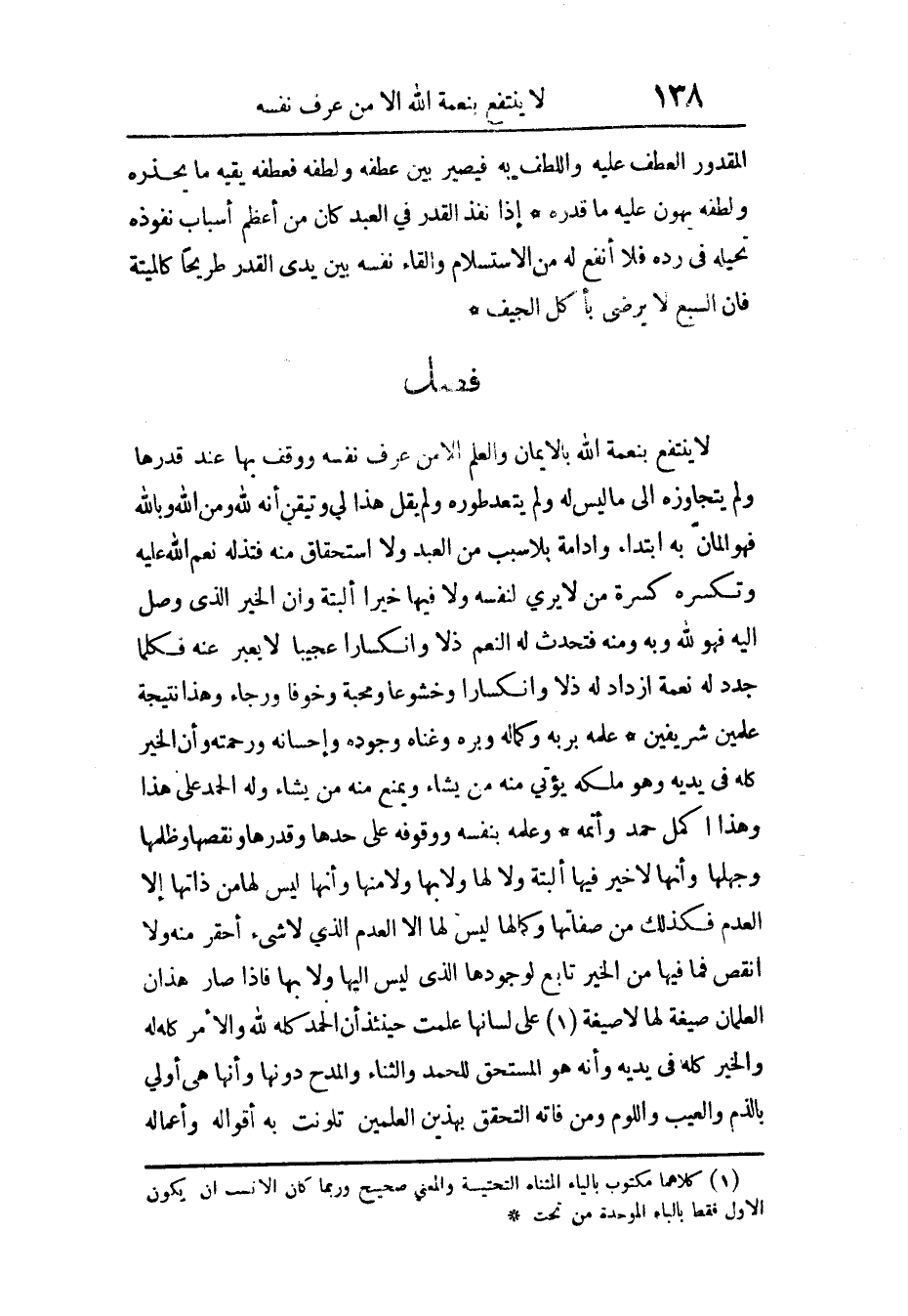 فصل لَا ينْتَفع بِنِعْمَة الله بِالْإِيمَان وَالْعلم إِلَّا من عرف نَفسه ووقف بهَا