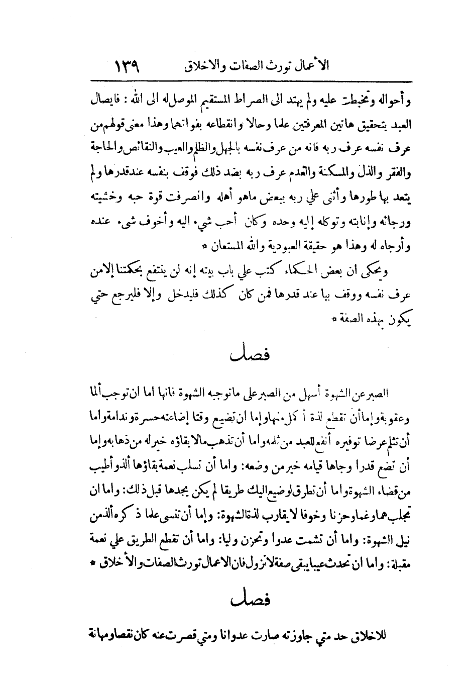 فصل للأخلاق حد مَتى جاوزته صَارَت عُدْوانًا وَمَتى قصّرت عَنهُ كَانَ نقصا ومهانة