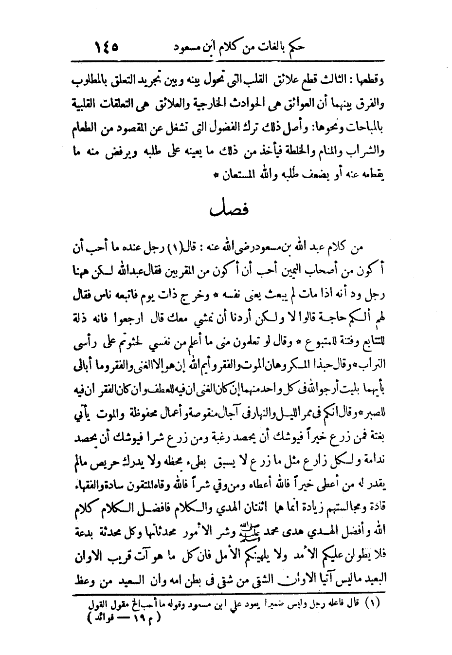 فصل من كَلَام عبد الله بن مَسْعُود رَضِي الله عَنهُ قَالَ رجل عِنْده
