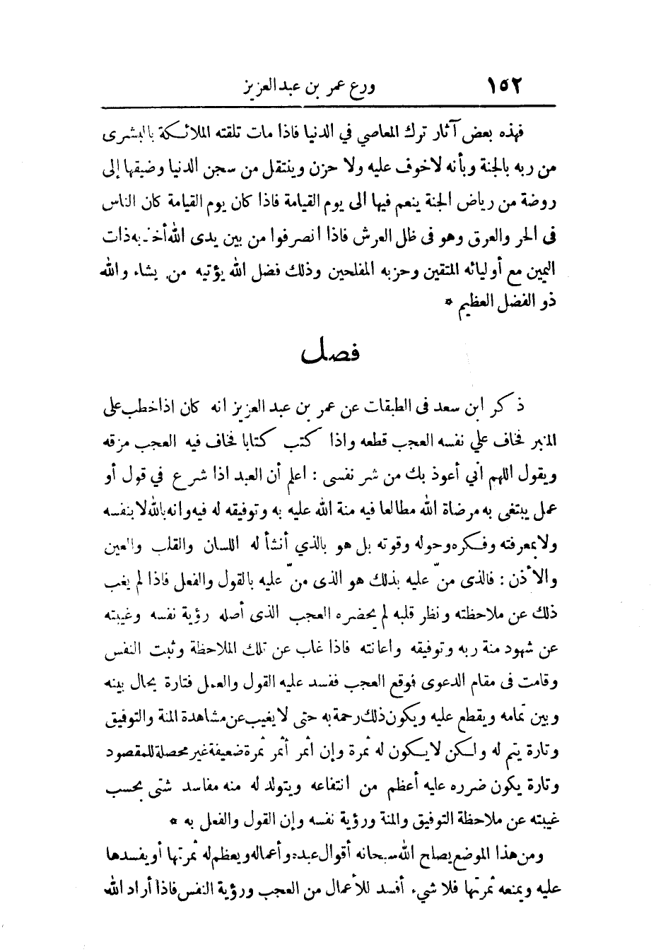 فصل ذكر ابْن سعد فِي الطَّبَقَات عَن عمر بن عبد الْعَزِيز أَنه كَانَ