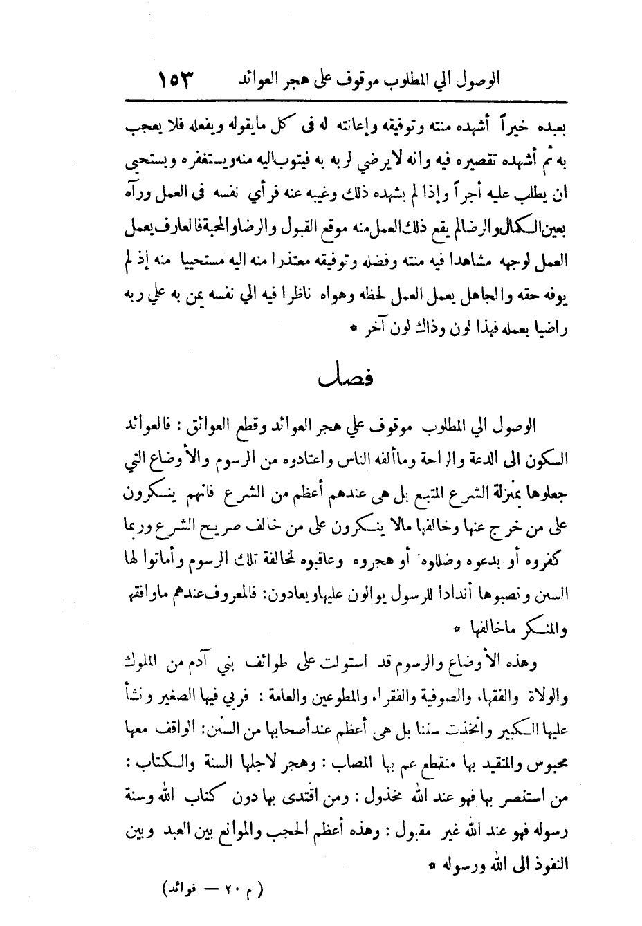 فصل الْوُصُول إِلَى الْمَطْلُوب مَوْقُوف على هجر العوائد وَقطع الْعَوَائِق فالعوائد