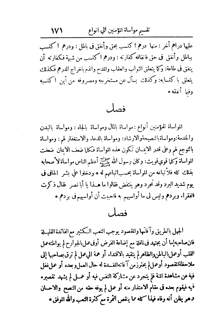 فصل الْمُوَاسَاة لِلْمُؤمنِ أَنْوَاع مواساة بِالْمَالِ ومواساة الجاه ومواساة