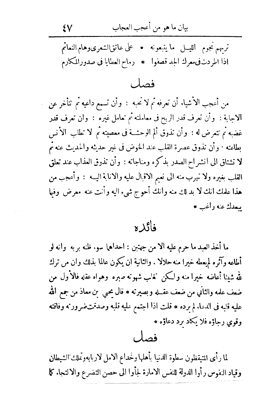 فصل من أعجب الْأَشْيَاء أَن تعرفه ثمَّ لَا تحبه وَأَن تسمع داعيه ثمَّ