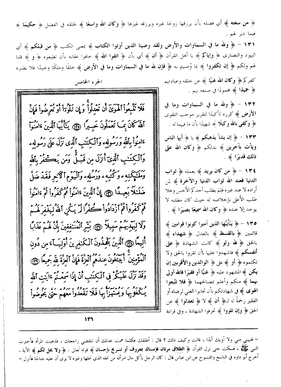 {وَإِنْ يَتَفَرَّقَا} أَيْ الزَّوْجَان بِالطَّلَاق {يُغْنِ اللَّه كُلًّا} عَنْ صَاحِبِهِ {مِنْ سَعَتِهِ} أَيْ فَضْلِهِ بِأَنْ يَرْزُقَهَا زَوْجًا غَيْرَهُ وَيَرْزَقَهُ غَيْرَهَا {وَكَانَ اللَّهُ وَاسِعًا} لِخَلْقِهِ فِي الْفَضْلِ {حَكِيمًا} فِيمَا دبر لهم