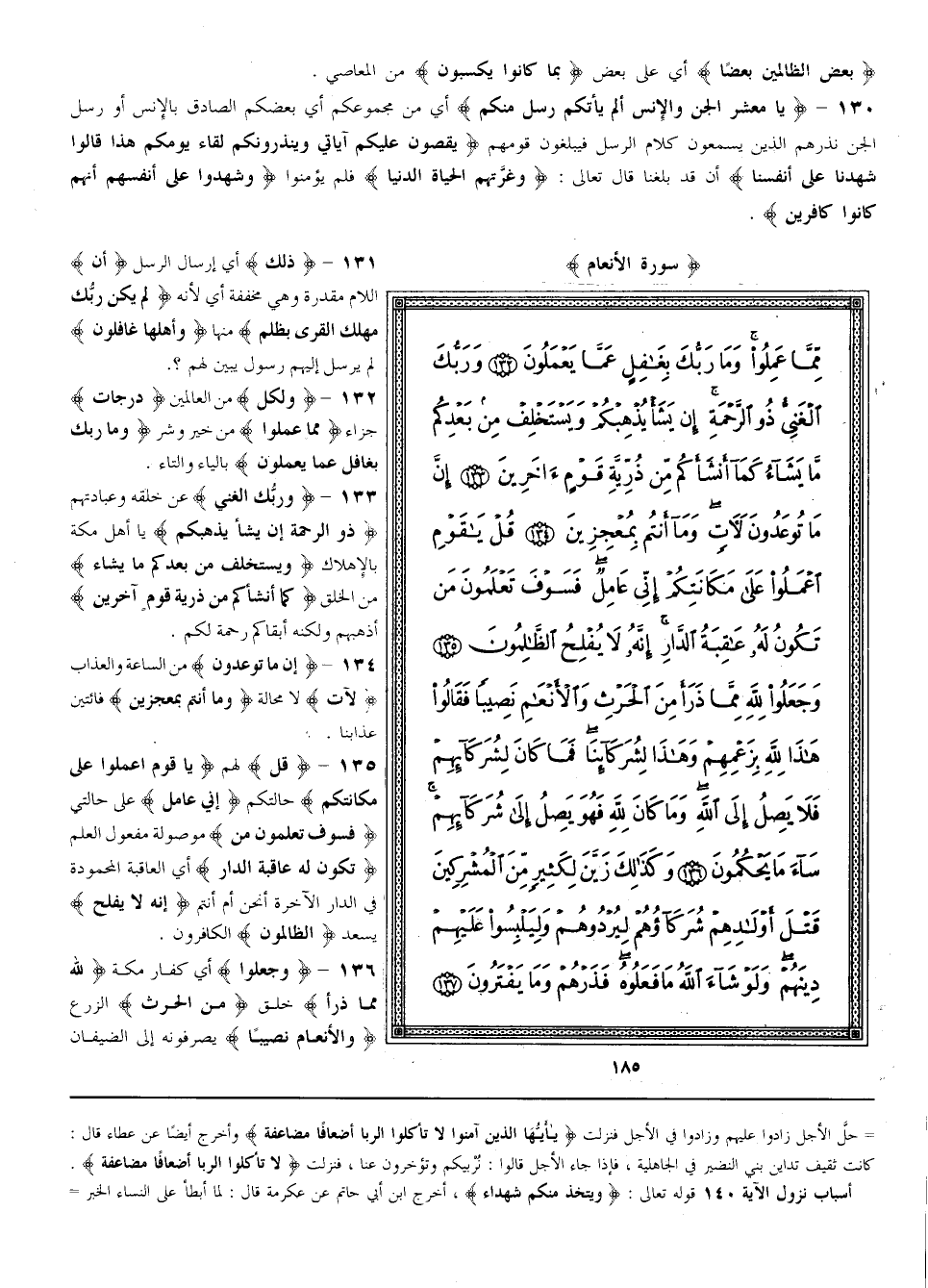 {ذَلِكَ} أَيْ إرْسَال الرُّسُل {أَنَّ} اللَّام مُقَدَّرَة وَهِيَ مُخَفَّفَة أَيْ لِأَنَّهُ {لَمْ يَكُنْ رَبّك مُهْلِك الْقُرَى بِظُلْمٍ} مِنْهَا {وَأَهْلهَا غَافِلُونَ} لَمْ يُرْسَل إلَيْهِمْ رَسُول يُبَيِّن لَهُمْ