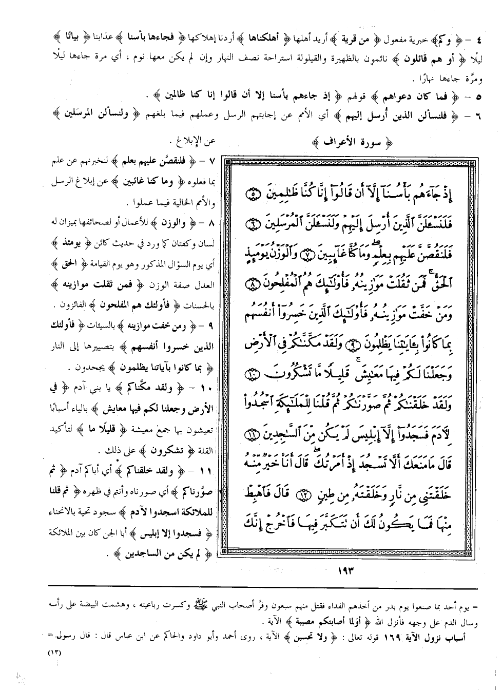 {وَكَمْ} خَبَرِيَّة مَفْعُول {مِنْ قَرْيَة} أُرِيدَ أَهْلهَا {أَهْلَكْنَاهَا} أَرَدْنَا إهْلَاكهَا {فَجَاءَهَا بَأْسنَا} عَذَابنَا {بَيَاتًا} لَيْلًا {أَوْ هُمْ قَائِلُونَ} نَائِمُونَ بِالظَّهِيرَةِ وَالْقَيْلُولَة اسْتِرَاحَة نِصْف النَّهَار وَإِنْ لَمْ يَكُنْ مَعَهَا نَوْم أَيْ مَرَّة جَاءَهَا لَيْلًا وَمَرَّة جَاءَهَا نهارا