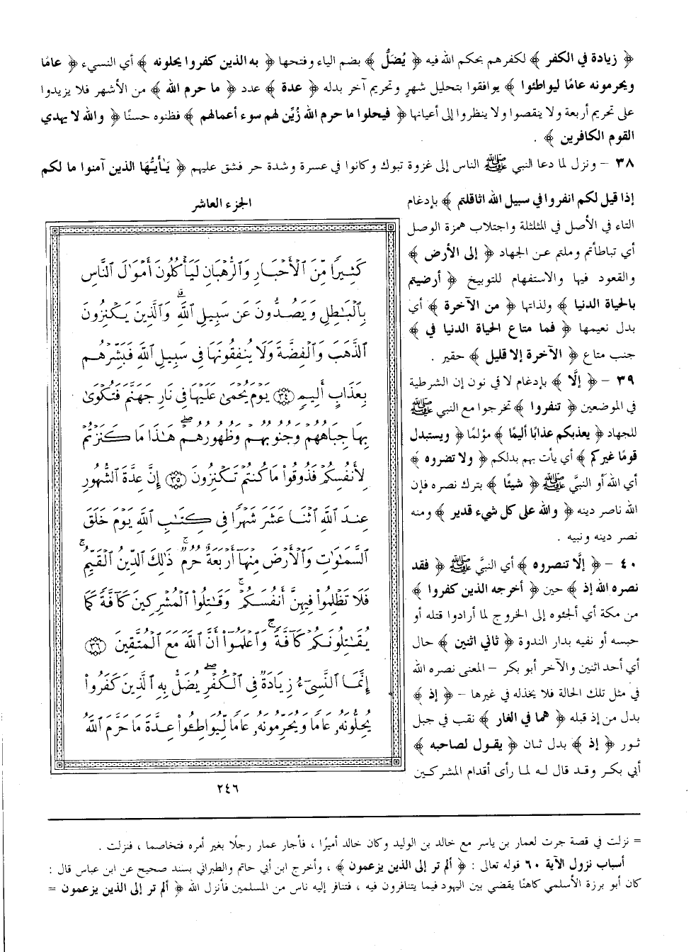 وَنَزَلَ لَمَّا دَعَا النَّبِيّ صَلَّى اللَّه عَلَيْهِ وَسَلَّمَ النَّاس إلَى غَزْوَة تَبُوك وَكَانُوا فِي عسرة وشدة حر فشق عليهم {يأيها الَّذِينَ آمَنُوا مَا لَكُمْ إذَا قِيلَ لَكُمْ انْفِرُوا فِي سَبِيل اللَّه اثَّاقَلْتُمْ} بِإِدْغَامِ التَّاء فِي الْأَصْل فِي الْمُثَلَّثَة وَاجْتِلَاب هَمْزَة الْوَصْل أَيْ تَبَاطَأْتُمْ وَمِلْتُمْ عَنْ الْجِهَاد {إلَى الْأَرْض} والقعود فيها والاستفهام للتوبيخ {أرضيتم بالحياة الدنيا} ولذاتها {مِنْ الْآخِرَة} أَيْ بَدَل نَعِيمهَا {فَمَا مَتَاع الْحَيَاة الدُّنْيَا فِي} جَنْب مَتَاع {الْآخِرَة إلَّا قليل} حقير