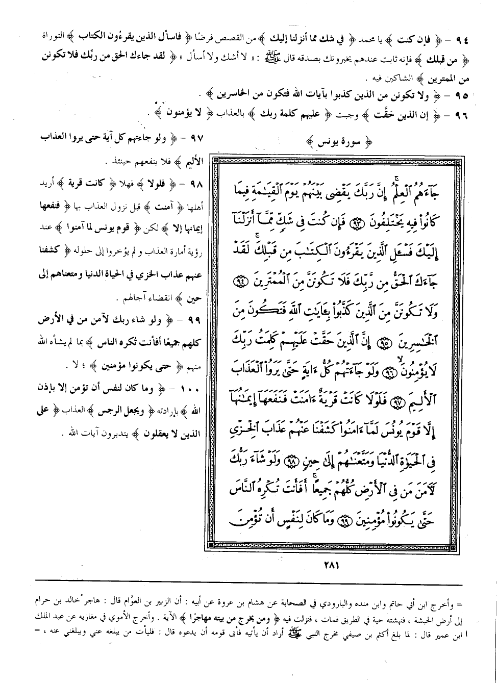 فَإِنْ كُنْت} يَا مُحَمَّد {فِي شَكّ مِمَّا أَنْزَلْنَا إلَيْك} مِنْ الْقَصَص فَرْضًا {فَاسْأَلْ الَّذِينَ يقرؤون الْكِتَاب} التَّوْرَاة {مِنْ قَبْلك} فَإِنَّهُ ثَابِت عِنْدهمْ يخبرونك بِصِدْقِهِ قَالَ صَلَّى اللَّه عَلَيْهِ وَسَلَّمَ لَا أَشُكّ وَلَا أَسْأَل {لَقَدْ جَاءَك الْحَقّ مِنْ رَبّك فَلَا تَكُونَن مِنْ الْمُمْتَرِينَ} الشَّاكِّينَ فِيهِ