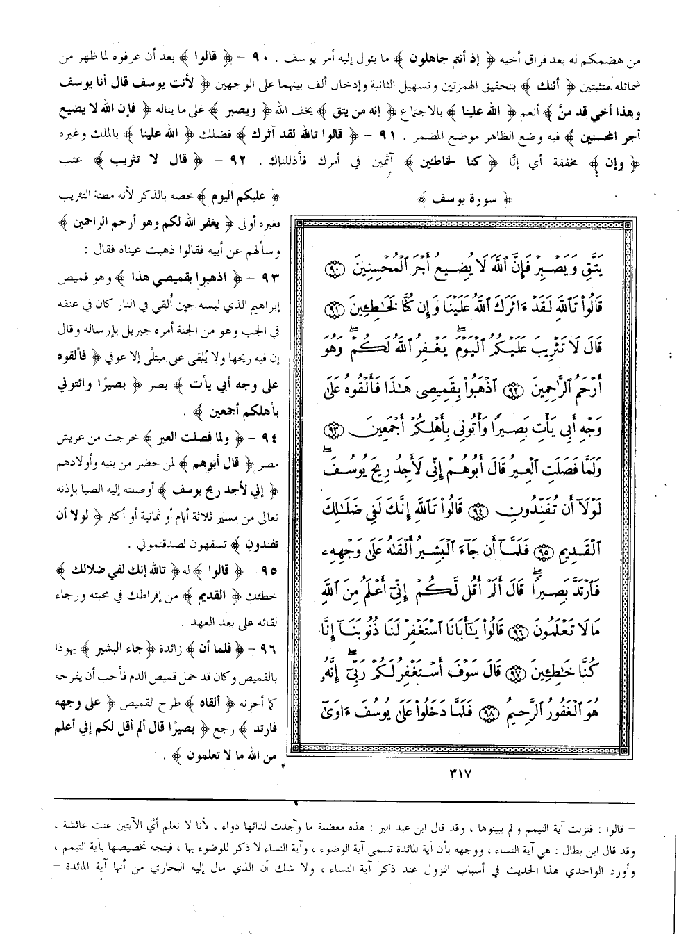 {قَالَ لَا تَثْرِيب} عَتْب {عَلَيْكُمْ الْيَوْم} خَصَّهُ بالذكر لأنه مظنه التثريب فغيره أولى {يغفر الله لكم وهو أرحم الراحمين} وَسَأَلَهُمْ عَنْ أَبِيهِ فَقَالُوا ذَهَبَتْ عَيْنَاهُ فَقَالَ