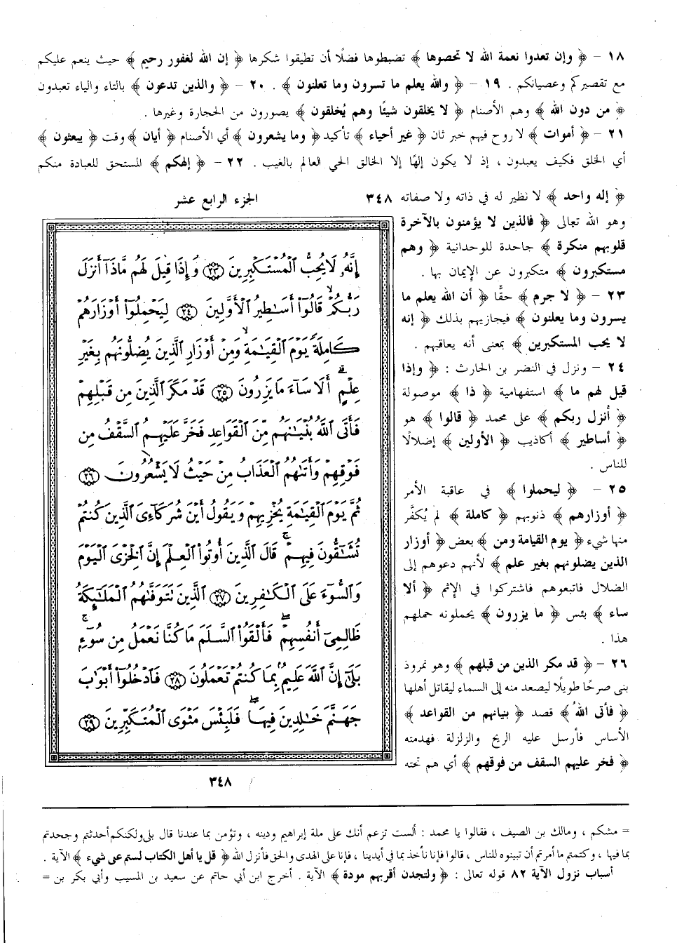 وَنَزَلَ فِي النَّضْر بْن الْحَارِث {وَإِذَا قِيلَ لَهُمْ مَا} اسْتِفْهَامِيَّة {ذَا} مَوْصُولَة {أَنْزَلَ رَبّكُمْ} عَلَى مُحَمَّد {قَالُوا} هُوَ {أَسَاطِير} أَكَاذِيب {الْأَوَّلِينَ} إضلالا للناس