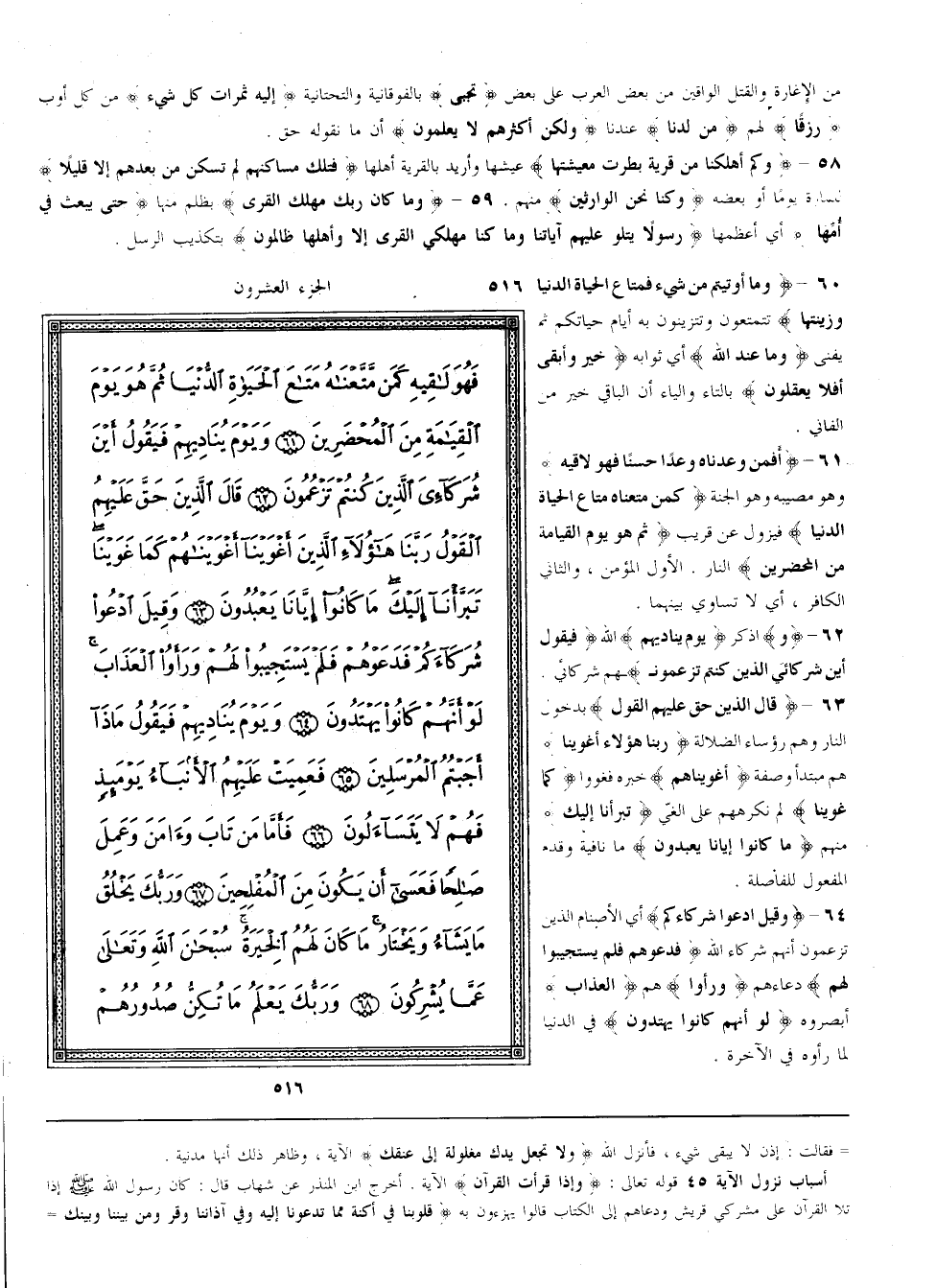 {وَقَالُوا} قَوْمه {إنْ نَتَّبِع الْهُدَى مَعَك نُتَخَطَّف من أرضنا} ننتزع منها بسرعة قال تعالى {أو لم نُمَكِّن لَهُمْ حَرَمًا آمِنًا} يَأْمَنُونَ فِيهِ مِنْ الإغارة والقتل الواقين مِنْ بَعْض الْعَرَب عَلَى بَعْض {تُجْبَى} بِالْفَوْقَانِيَّة والتحتانية {إليه ثمرات كل شيء} مِنْ كُلّ أَوْب {رِزْقًا} لَهُمْ {مِنْ لَدُنَّا} عِنْدنَا {وَلَكِنَّ أَكْثَرهمْ لَا يَعْلَمُونَ} أَنَّ مَا نقوله حق