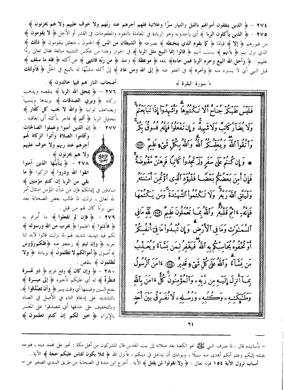 {الَّذِينَ يَأْكُلُونَ الرِّبَا} أَيْ يَأْخُذُونَهُ وَهُوَ الزِّيَادَة فِي الْمُعَامَلَة بِالنُّقُودِ وَالْمَطْعُومَات فِي الْقَدْر أَوْ الْأَجَل {لَا يَقُومُونَ} مِنْ قُبُورهمْ {إلَّا} قِيَامًا {كَمَا يَقُوم الَّذِي يَتَخَبَّطهُ} يَصْرَعهُ {الشَّيْطَان مِنْ الْمَسّ} الْجُنُون مُتَعَلِّق بيَقُومُونَ {ذَلِكَ} الَّذِي نَزَلَ بِهِمْ {بِأَنَّهُمْ} بِسَبَبِ أَنَّهُمْ {قَالُوا إنَّمَا الْبَيْع مِثْل الرِّبَا} فِي الْجَوَاز وَهَذَا مِنْ عَكْس التَّشْبِيه مُبَالَغَة فَقَالَ تَعَالَى رَدًّا عَلَيْهِمْ {وَأَحَلَّ اللَّه الْبَيْع وَحَرَّمَ الرِّبَا فَمَنْ جَاءَهُ} بَلَغَهُ {مَوْعِظَة} وَعْظ {مِنْ رَبّه فَانْتَهَى} عَنْ أَكْله {فَلَهُ مَا سَلَفَ} قَبْل النَّهْي أَيْ لَا يَسْتَرِدّ مِنْهُ {وَأَمْره} فِي الْعَفْو عَنْهُ {إلَى اللَّه وَمَنْ عَادَ} إلَى أَكْله مُشَبِّهًا لَهُ بِالْبَيْعِ فِي الْحِلّ {فأولئك أصحاب النار هم فيها خالدون}