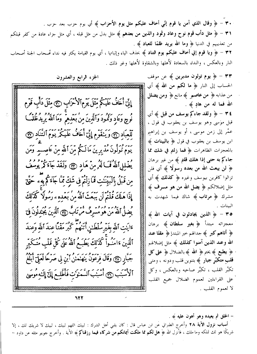 {وَقَالَ الَّذِي آمَنَ يَا قَوْم إنِّي أَخَاف عَلَيْكُمْ مِثْل يَوْم الْأَحْزَاب} أَيْ يَوْم حِزْب بعد حزب