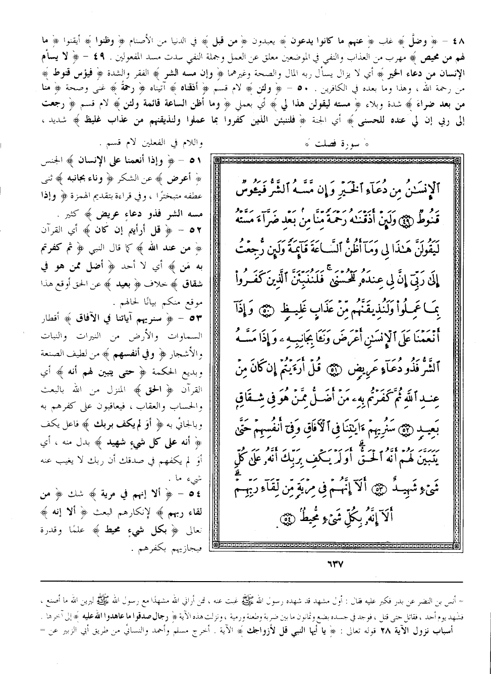 {لا يسأم الإنسان من دعاء الخير} أي لا يزال يسأل ربه المال والصحة وغيرهما {وإن مسه الشر} الفقر والشدة {فيؤس قنوط} من رحمة الله وهذا وما بعده في الكافرين