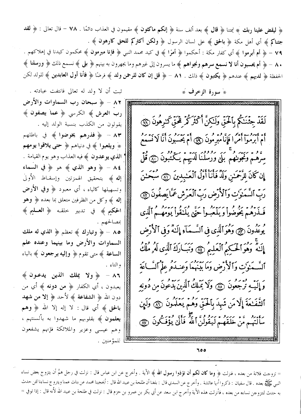 قال تعالى {لَقَدْ جِئْنَاكُمْ} أَيْ أَهْل مَكَّة {بِالْحَقِّ} عَلَى لسان الرسول {ولكن أكثركم للحق كارهون}