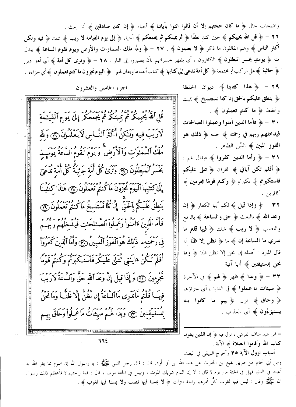 {وَتَرَى كُلّ أُمَّة} أَيْ أَهْل دِين {جَاثِيَة} عَلَى الرُّكَب أَوْ مُجْتَمِعَة {كُلّ أُمَّة تُدْعَى إلَى كِتَابهَا} كِتَاب أَعْمَالهَا وَيُقَال لَهُمْ {الْيَوْم تُجْزَوْنَ مَا كُنْتُمْ تَعْمَلُونَ} أَيْ جَزَاءَهُ