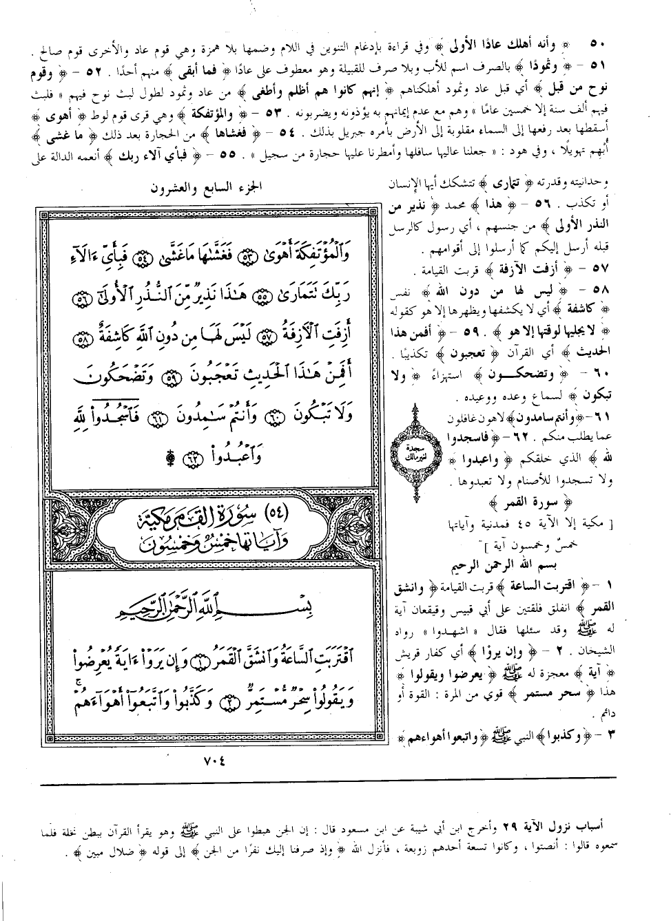 {وَأَنَّهُ أَهْلَكَ عَادًا الْأُولَى} وَفِي قِرَاءَة بِإِدْغَامِ التَّنْوِين فِي اللَّام وَضَمّهَا بِلَا هَمْزَة وَهِيَ قوم عاد والأخرى قوم صالح