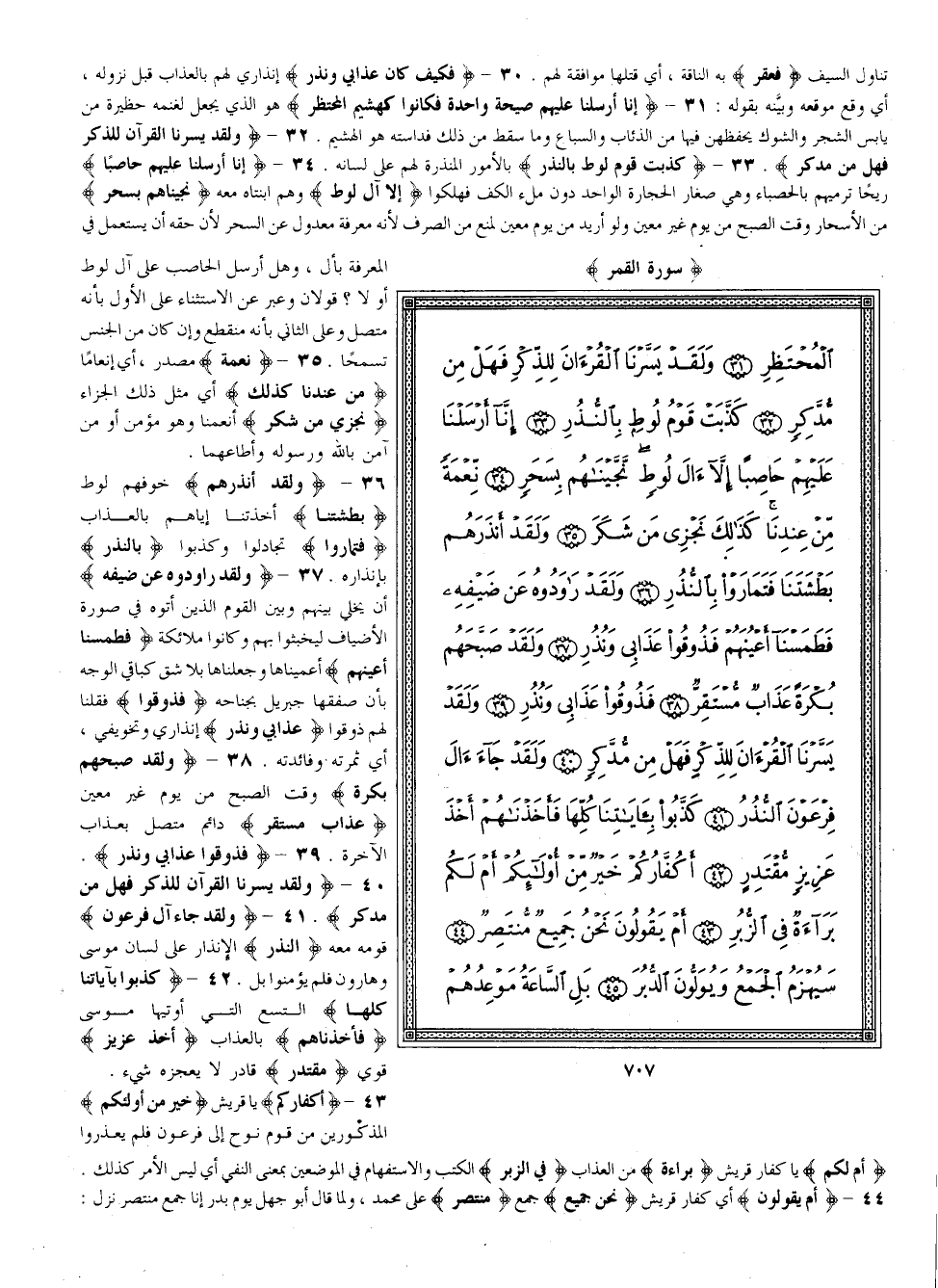 {وَلَقَدْ أَنْذَرَهُمْ} خَوَّفَهُمْ لُوط {بَطْشَتنَا} أَخْذَتنَا إيَّاهُمْ بِالْعَذَابِ {فَتَمَارَوْا} تَجَادَلُوا وَكَذَّبُوا {بِالنُّذُرِ} بِإِنْذَارِهِ