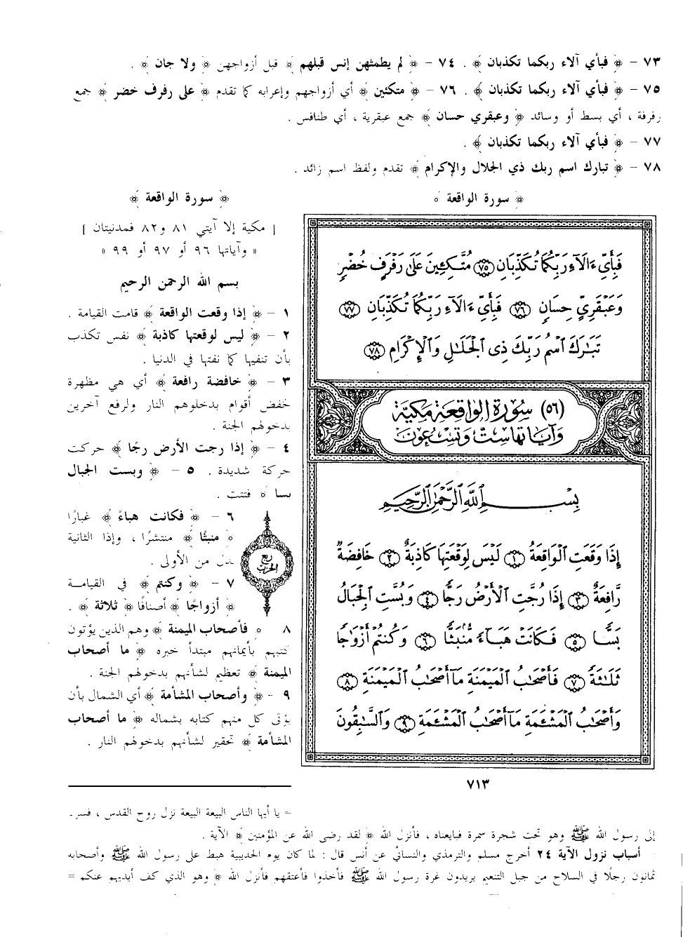 {تَبَارَكَ اسْم رَبّك ذِي الْجَلَال وَالْإِكْرَام} تَقَّدَمَ ولفظ اسم زائد = 56 سورة الواقعة