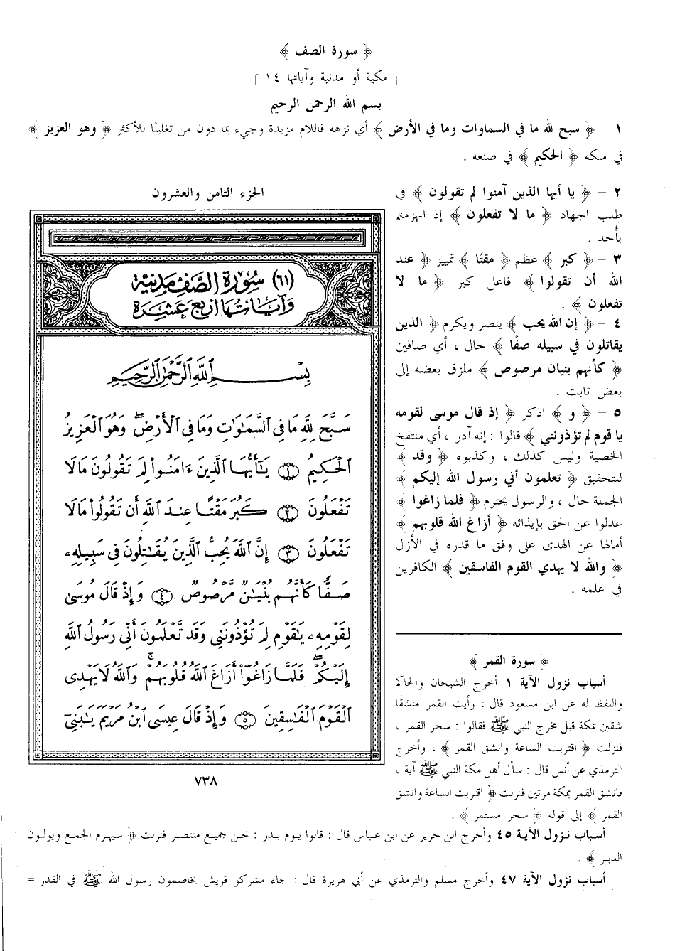 {إنَّ اللَّه يُحِبّ} يَنْصُر وَيُكْرِم {الَّذِينَ يُقَاتِلُونَ فِي سَبِيله صَفًّا} حَال أَيْ صَافِّينَ {كَأَنَّهُمْ بُنْيَان مَرْصُوص} مُلْزَق بَعْضه إلَى بَعْض ثَابِت