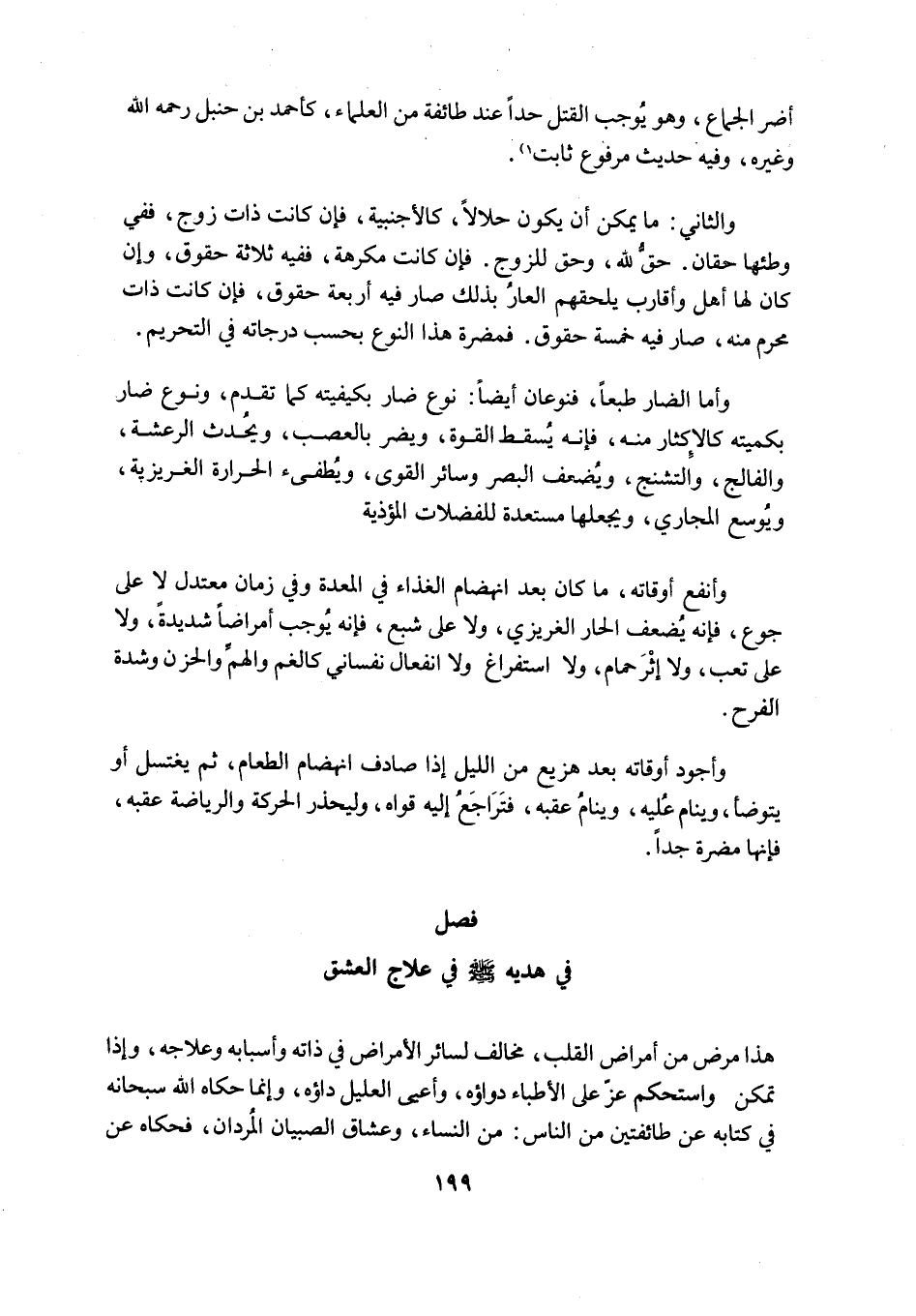فَصْلٌ فِي هَدْيِهِ صَلَّى اللَّهُ عَلَيْهِ وَسَلَّمَ فِي عِلَاجِ الْعِشْقِ
