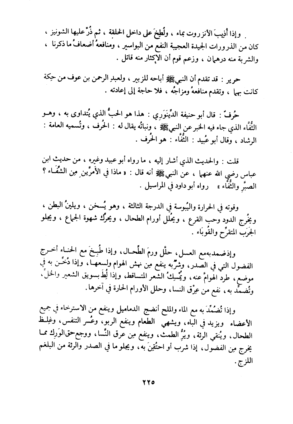 حرف: قَالَ أَبُو حَنِيفَةَ الدِّينَوَرِيُّ: هَذَا هُوَ الْحَبُّ الَّذِي يُتَدَاوَى بِهِ، وَهُوَ الثُّفَّاءُ الَّذِي جَاءَ فِيهِ الْخَبَرُ عَنِ النَّبِيِّ صَلَّى اللَّهُ عَلَيْهِ وَسَلَّمَ، وَنَبَاتُهُ يُقَالُ لَهُ: الْحُرْفُ، وَتُسَمِّيهِ الْعَامَّةُ: