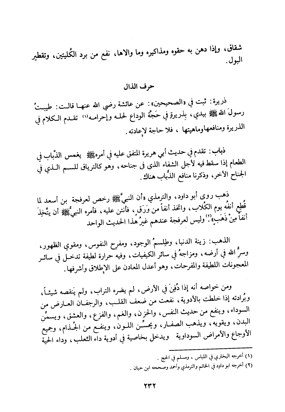 ذباب: تَقَدَّمَ فِي حَدِيثِ أَبِي هُرَيْرَةَ الْمُتَّفَقِ عَلَيْهِ في أمره صلّى الله عليه وسلم يغمس الذُّبَابِ فِي الطَّعَامِ إِذَا سَقَطَ فِيهِ لِأَجْلِ الشِّفَاءِ الَّذِي فِي جَنَاحِهِ، وَهُوَ كَالتِّرْيَاقِ لِلسُّمِّ الَّذِي فِي الْجَنَاحِ الْآخَرِ، وَذَكَرْنَا مَنَافِعَ الذُّبَابِ هناك.