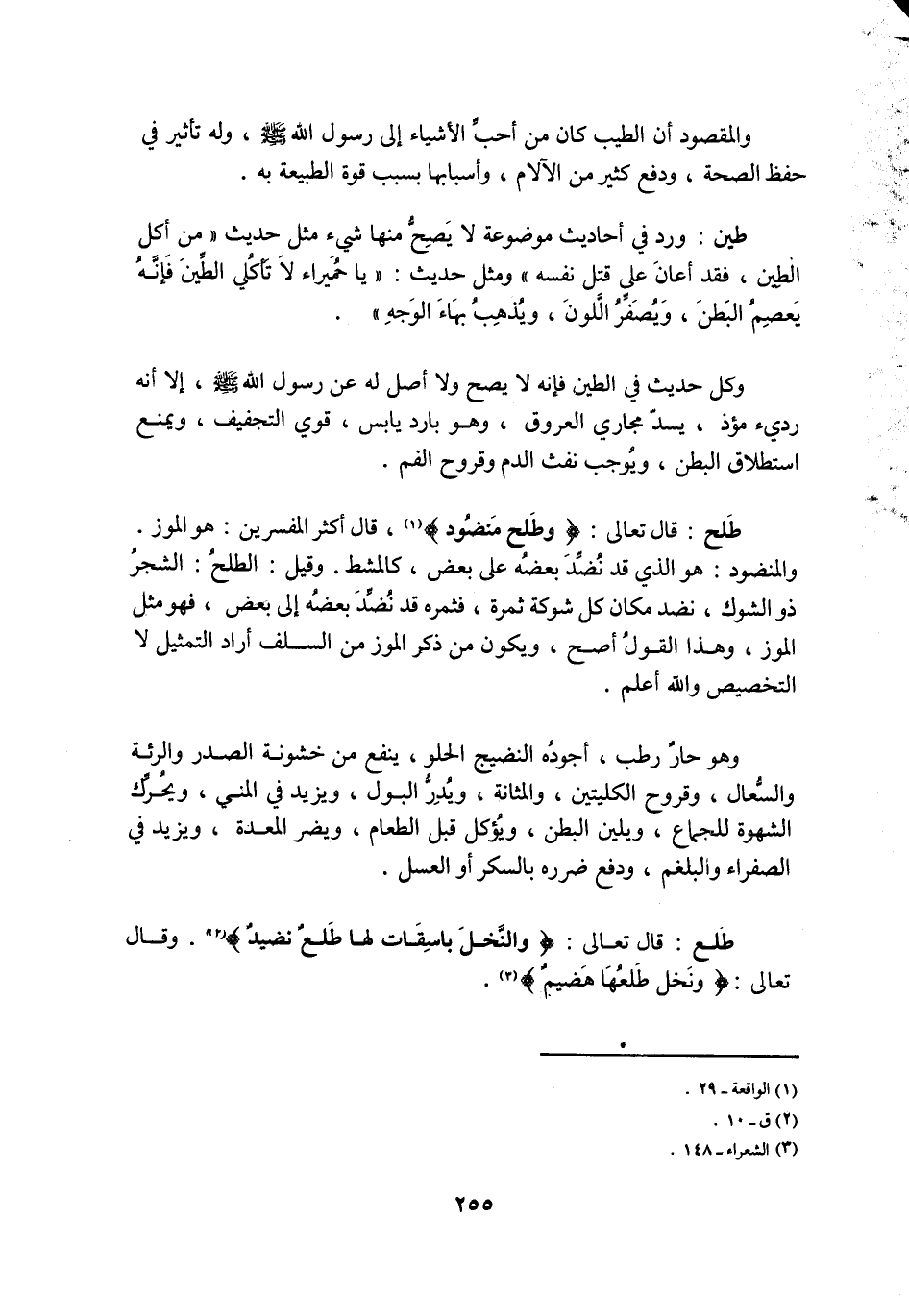 طلح: قال تعالى: وَطَلْحٍ مَنْضُودٍ «1» ، قَالَ أَكْثَرُ الْمُفَسِّرِينَ: هُوَ الْمَوْزُ.