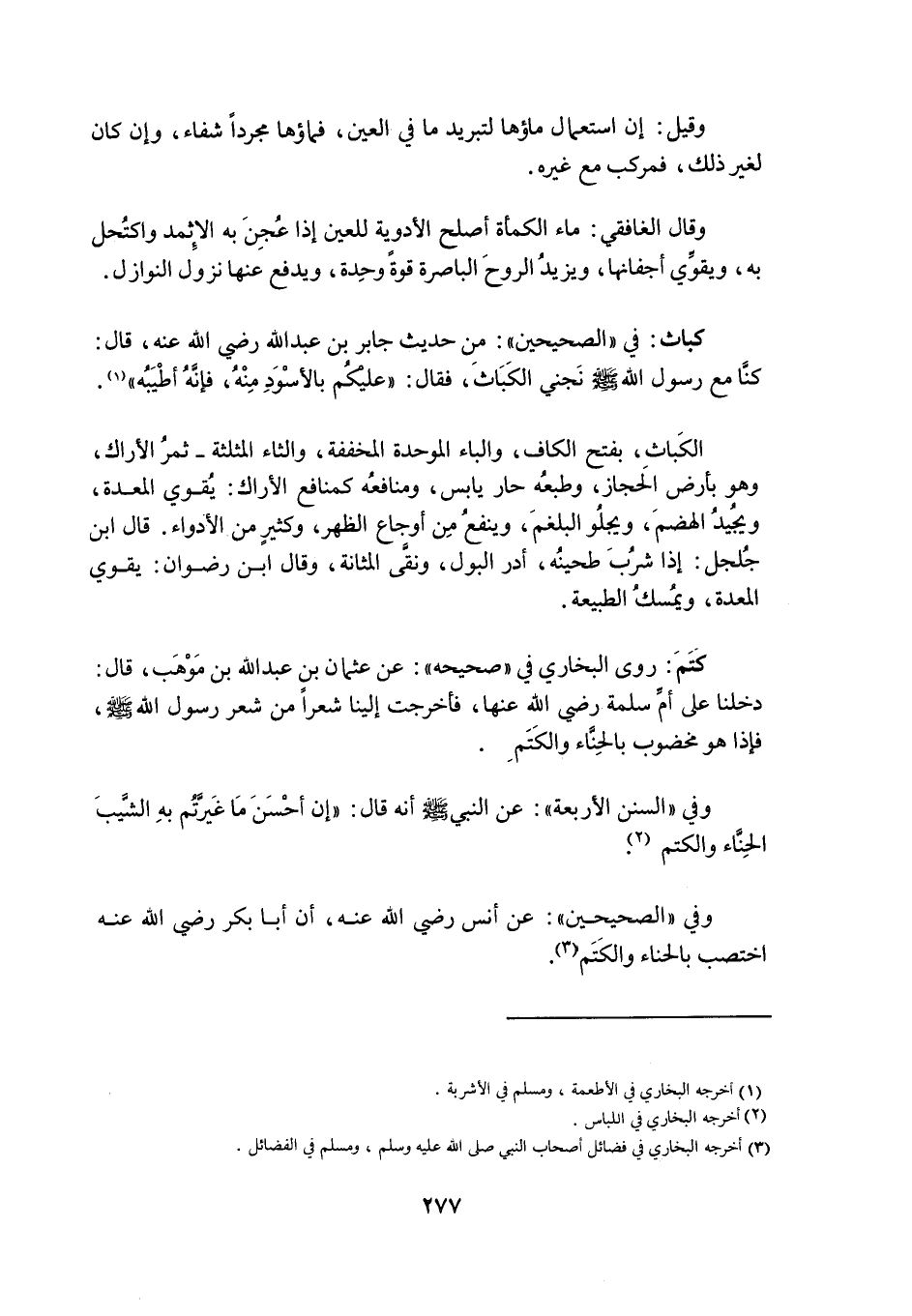 وَفِي «الصَّحِيحَيْنِ» : عَنْ أنس رَضِيَ اللَّهُ عَنْهُ، أَنَّ أبا بكر رضي الله عنه اختصب بالحناء والكتم «3» .