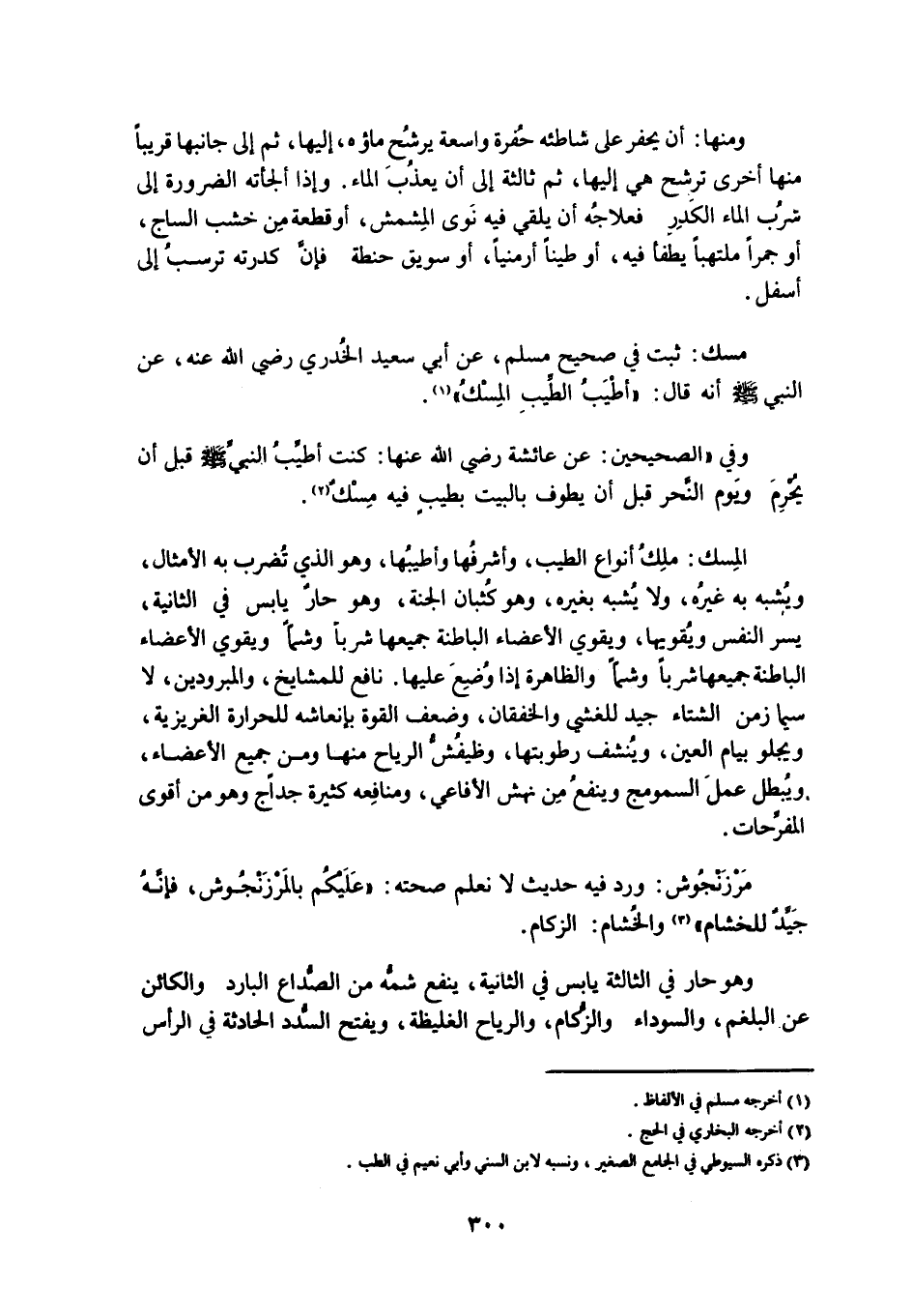 مسك: ثَبَتَ فِي صَحِيحِ مسلم، عَنْ أَبِي سَعِيدٍ الْخُدْرِيِّ رَضِيَ اللَّهُ عَنْهُ، عَنِ النَّبِيِّ صَلَّى اللَّهُ عَلَيْهِ وَسَلَّمَ أَنَّهُ قَالَ: «أَطْيَبُ الطِّيبِ الْمِسْكُ» «1» .