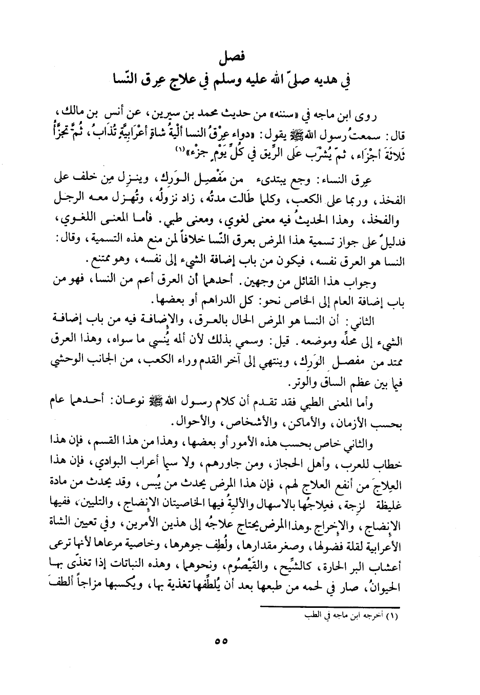 وَأَمَّا الْمَعْنَى الطِّبِّيُّ فَقَدْ تَقَدَّمَ أَنَّ كَلَامَ رَسُولِ اللَّهِ صَلَّى اللَّهُ عَلَيْهِ وَسَلَّمَ نَوْعَانِ: أَحَدُهُمَا عَامٌّ بِحَسْبِ الْأَزْمَانِ، وَالْأَمَاكِنِ، وَالْأَشْخَاصِ، وَالْأَحْوَالِ.
