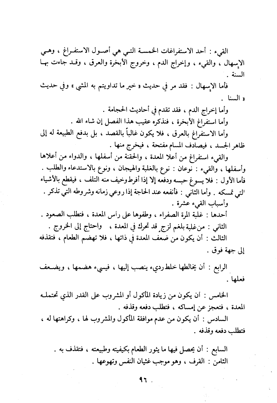 الْقَيْءُ: أَحَدُ الْاِسْتِفْرَاغَاتِ الْخَمْسَةِ الَّتِي هِيَ أُصُولُ الِاسْتِفْرَاغِ، وَهِيَ الْإِسْهَالُ، وَالْقَيْءُ، وَإِخْرَاجُ الدَّمِ، وَخُرُوجُ الْأَبْخِرَةِ وَالْعَرَقِ، وَقَدْ جَاءَتْ بِهَا السُّنَّةُ.
