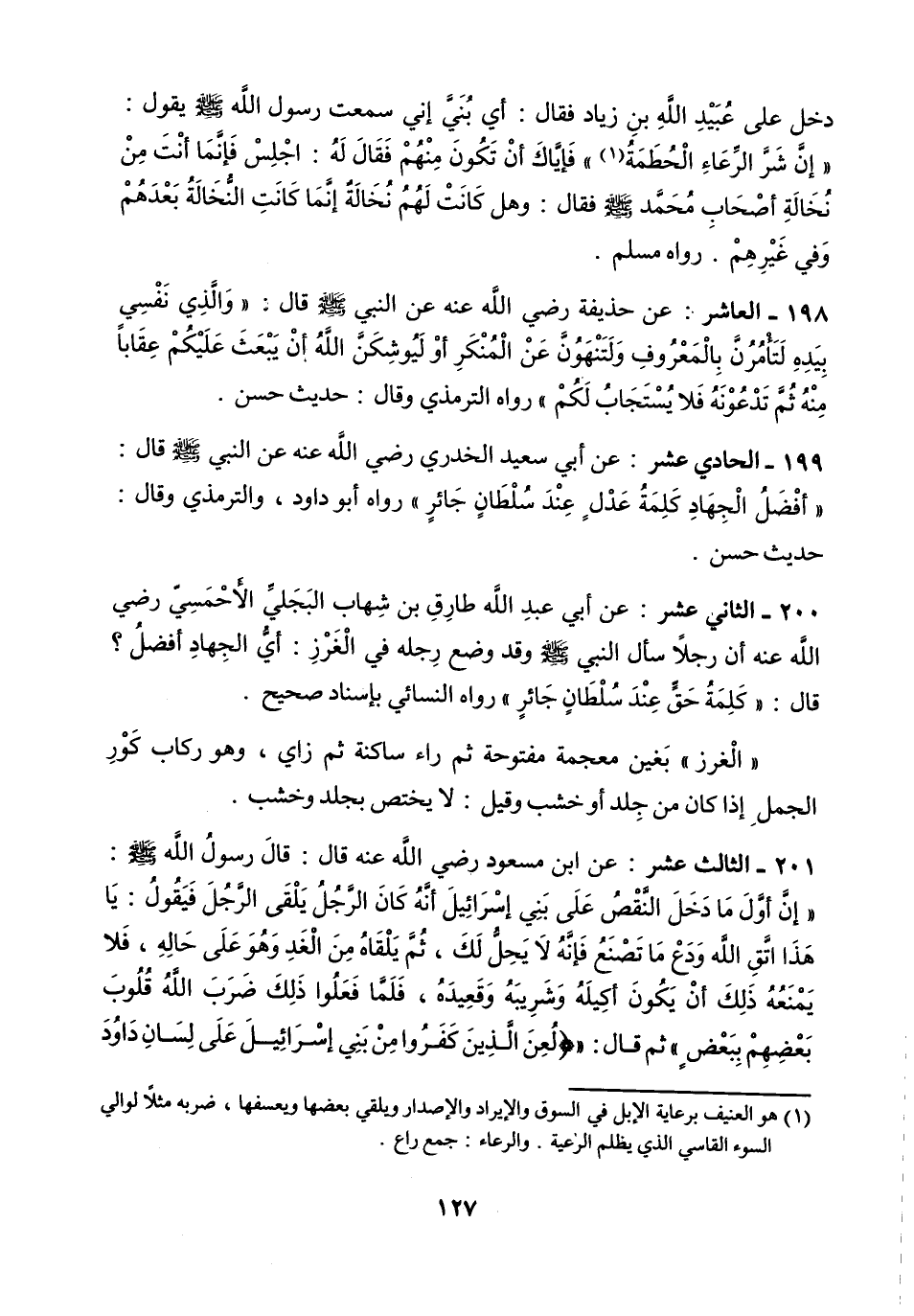 هذا لفظ أبي داود ولفظ الترمذي قال رسول الله A: " لما وقعت بنو إسرائيل في المعاصي نهتهم علماؤهم فلم ينتهوا فجالسوهم في مجالسهم وواكلوهم وشاربوهم فضرب الله قلوب بعضهم ببعض ولعنهم على لسان داود وعيسى ابن مريم ذلك بما عصوا وكانوا يعتدون " فجلس رسول الله A وكان متكئا فقال: " لا والذي نفسي بيده حتى تأطروهم على الحق أطرا "